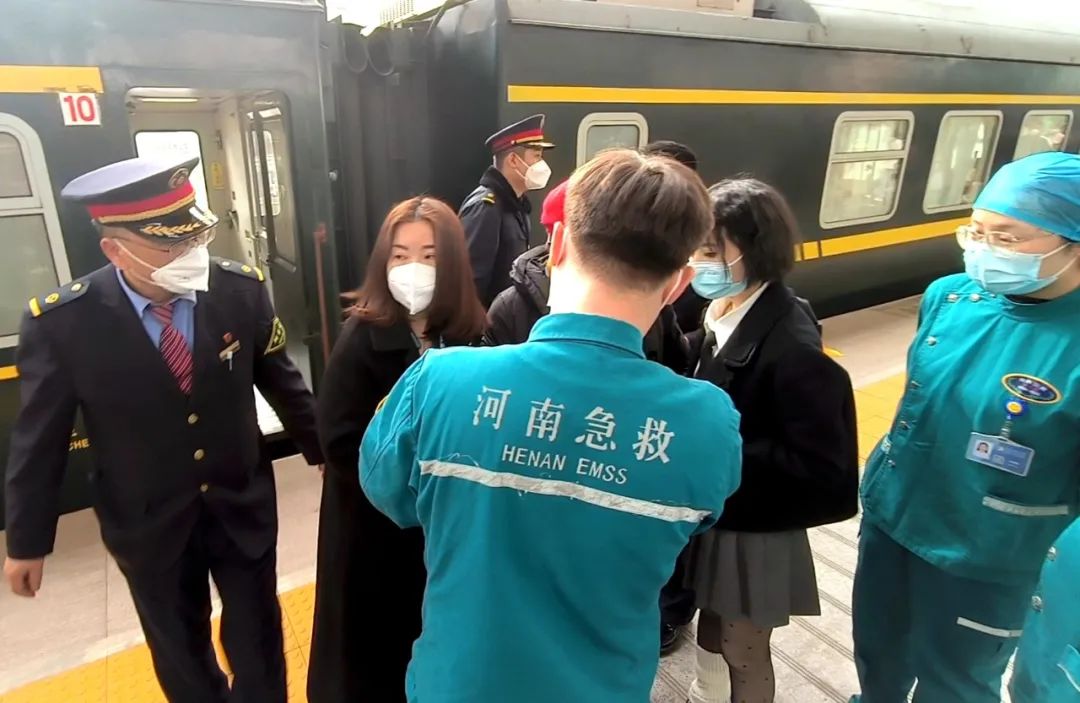 與此同時(shí),列車員緊急聯(lián)系了前方??空镜募本戎行?,并和阿姨的家屬取得聯(lián)系。在整個(gè)過(guò)程中,劉炎炎一直守護(hù)在阿姨身邊,寸步不離,直到列車到站,她又和120急救人員說(shuō)明了病情。