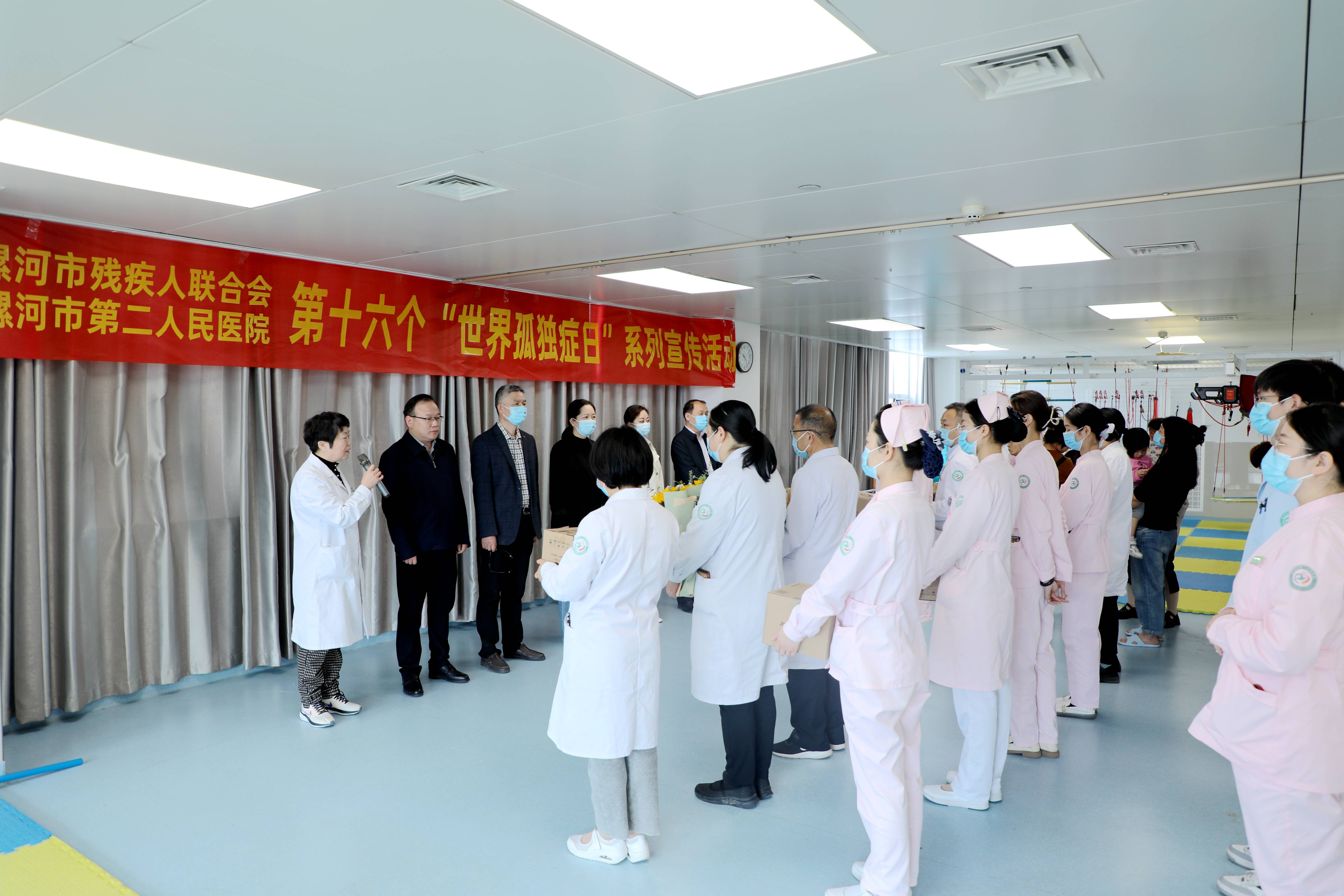 隨后,雙方領導向兒童康復科醫(yī)護人員及孤獨癥患兒和家屬代表送上鮮花和禮品。最后,市二院兒科(市兒童醫(yī)療中心)主任蘇愛芳代表醫(yī)護人員對領導們的關愛表示感謝,同時倡導社會各界人士關愛孤獨癥兒童及照顧者和工作者,為孤獨癥群體提供支持,共同創(chuàng)造“有愛無礙”的社會環(huán)境,讓殘疾兒童在社會大家庭的關愛下健康、快樂、幸福地成長。(通訊員:尹紅婭 姬靜娟)