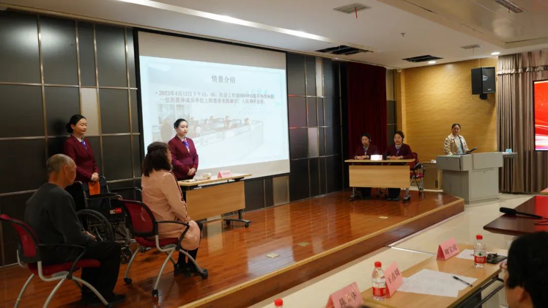 4月13日中午,漯河市骨科醫(yī)院(漯河醫(yī)專二附院)門診樓502會議室內(nèi),只見隊(duì)列整齊劃一的保安人員、社工部工作人員,面帶微笑的醫(yī)保辦人員、財(cái)務(wù)科人員齊聚一堂,正在投入沉浸式表演:“您好,漯河市骨科醫(yī)院6666958服務(wù)熱線,請問有什么可以幫到您的?”“阿姨,您別著急,我?guī)メt(yī)保辦”……