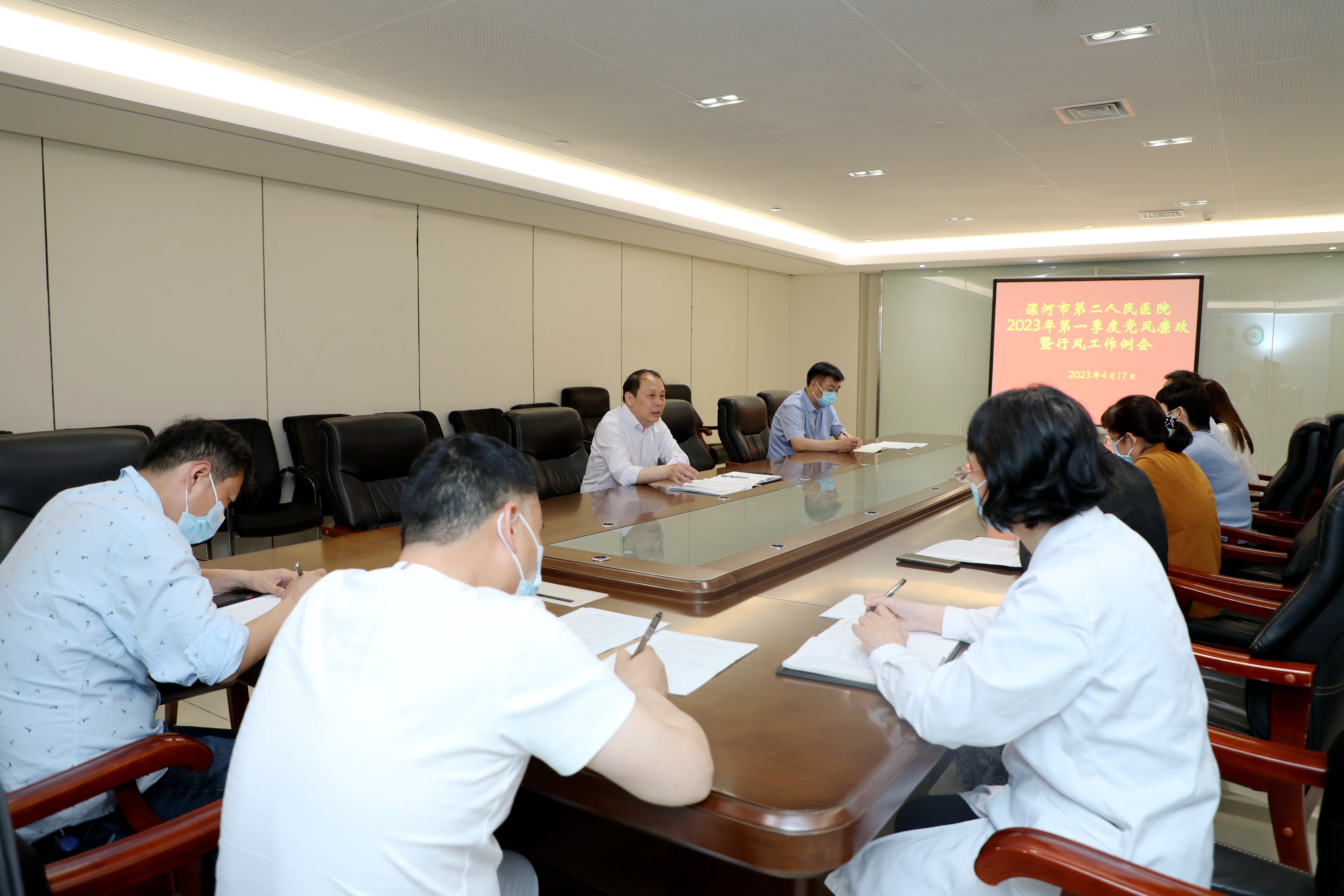 4月17日下午,市二院組織召開了2023年第一季度黨風廉政建設暨行風工作例會。會議由紀委書記孟德陽主持,全院行政職能科長參加會議。