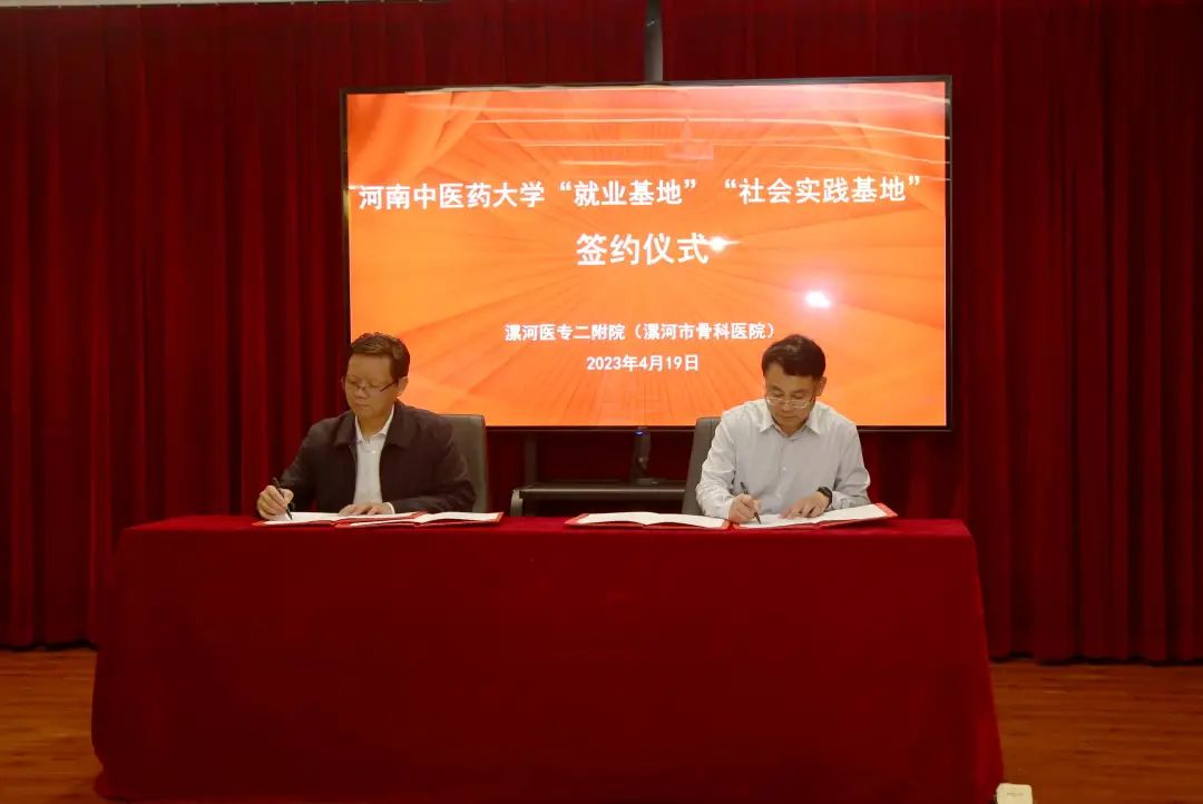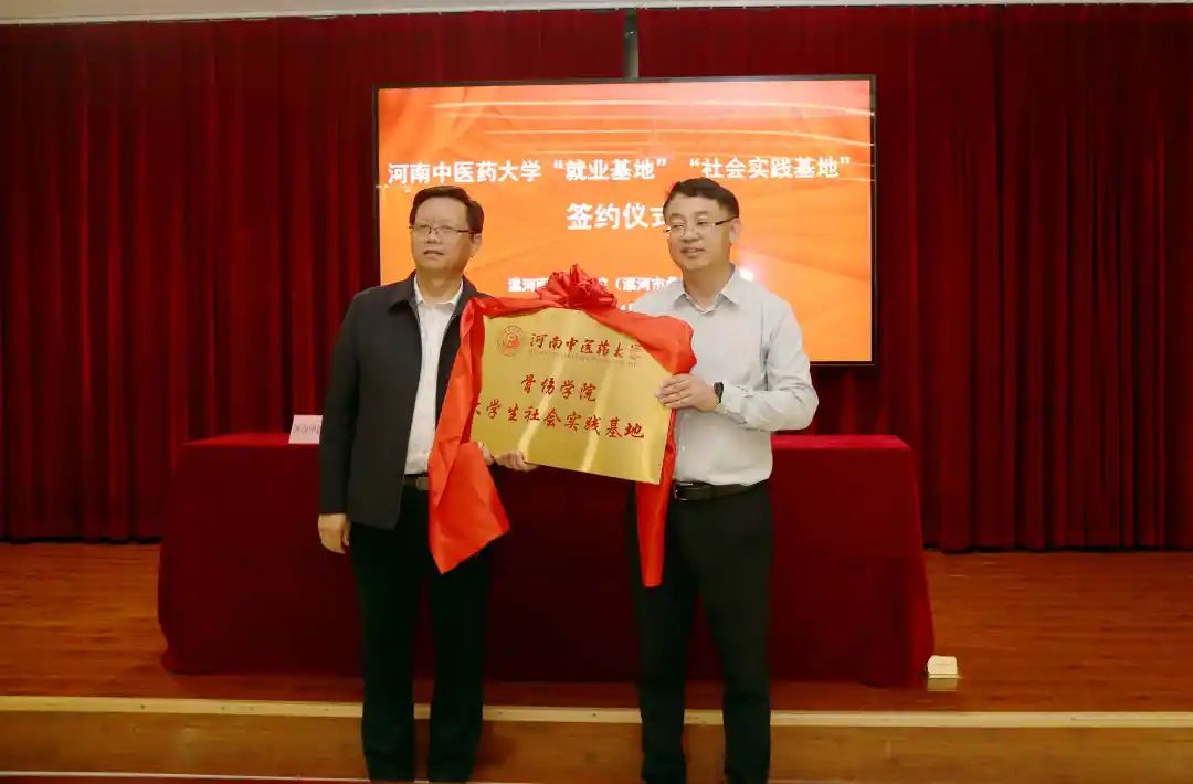 4月19日上午,漯河市骨科醫(yī)院(漯河醫(yī)專二附院)與河南中醫(yī)藥大學(xué)舉行“就業(yè)基地”“社會實踐基地”簽約授牌儀式。
