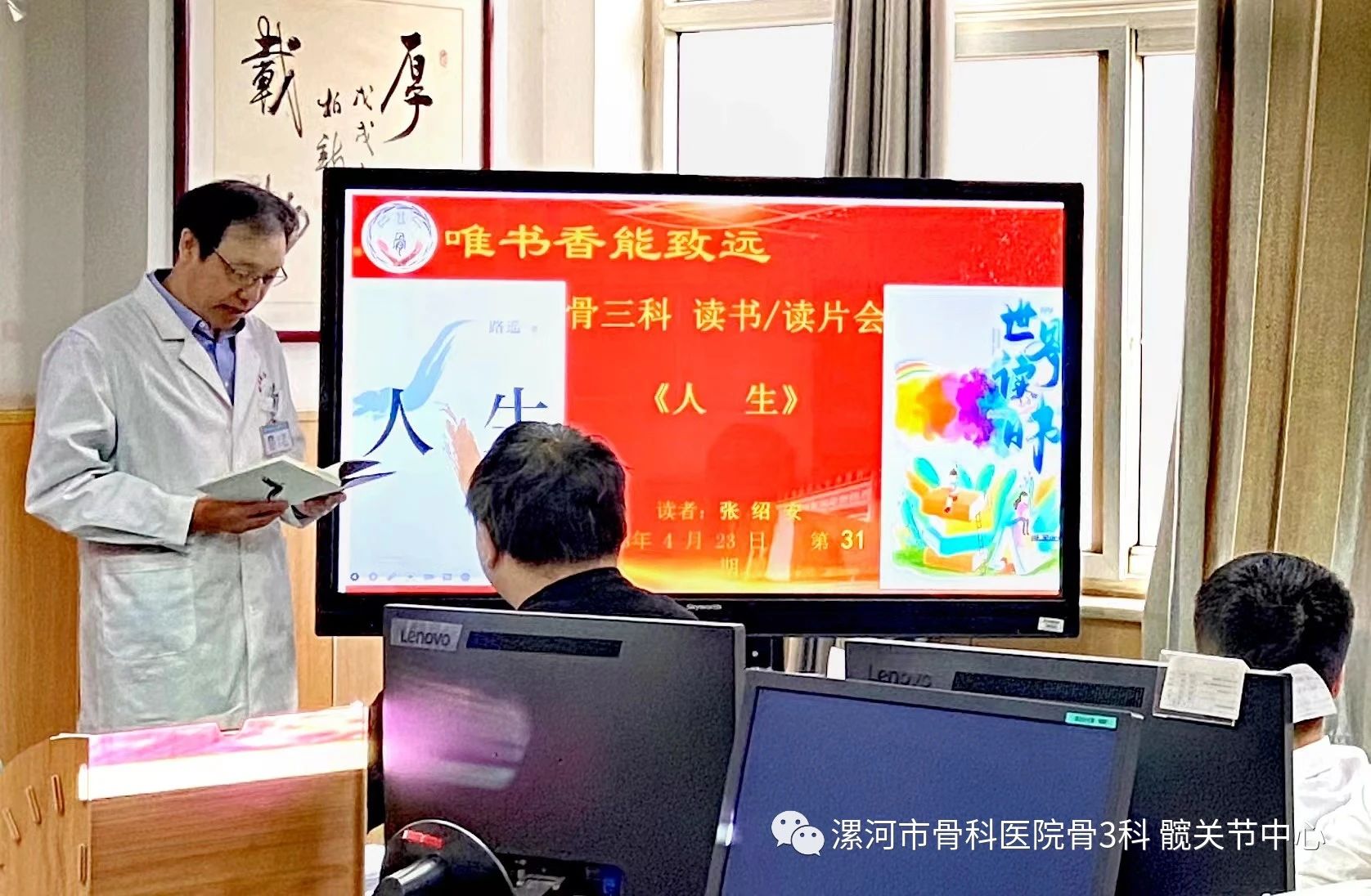 最美人間四“閱”天,正是讀書好時節(jié)。每年4月23日是世界讀書日,為打造學習型科室,在張紹安主任的領導下,骨三科已連續(xù)開展31期讀書會。本期讀書會主題為“滋養(yǎng)民族靈魂,培養(yǎng)文化自信”,分享名著《人生》作者:路遙 讀者:張紹安。