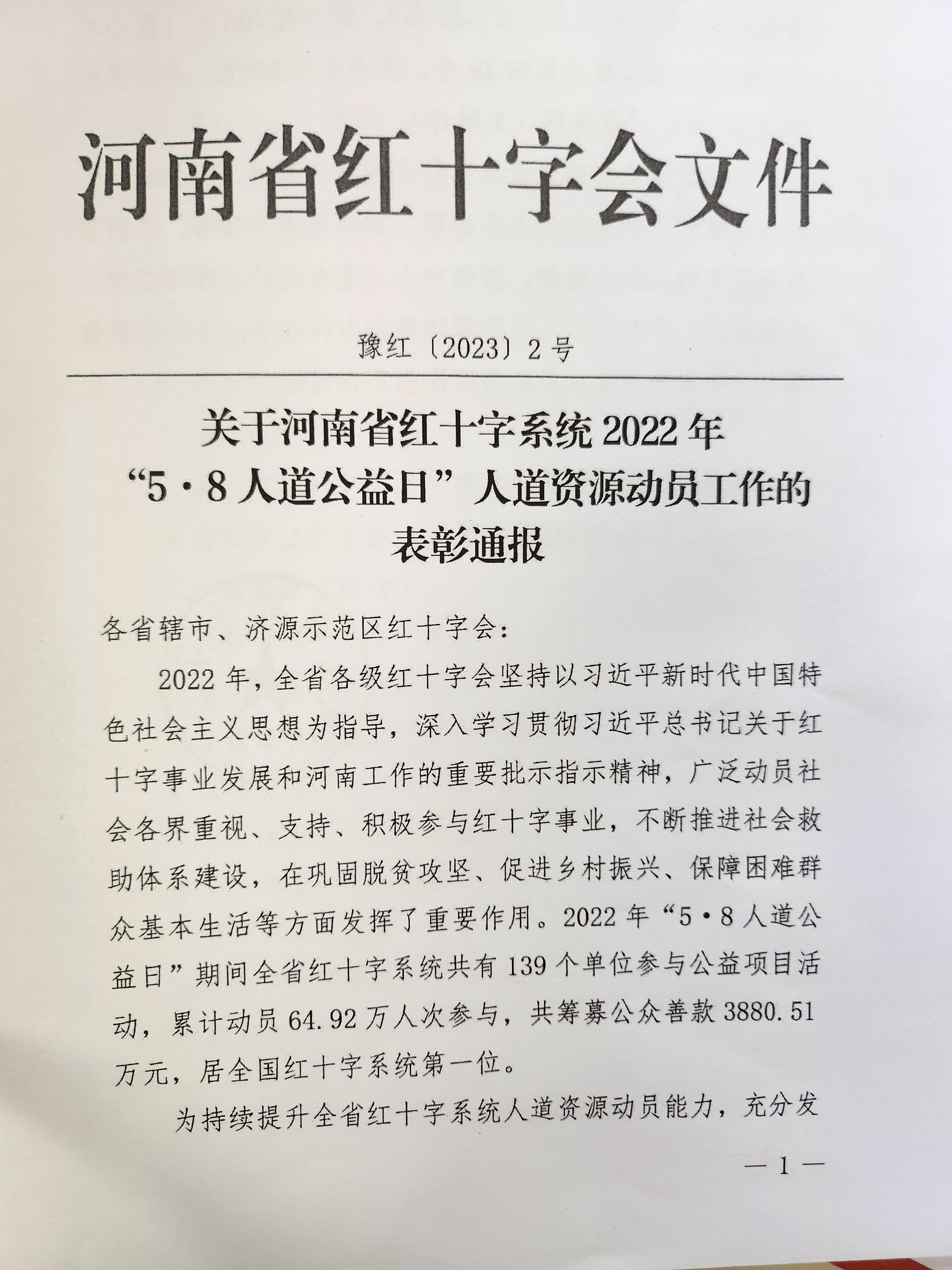 會上,宣讀了《關(guān)于河南省紅十字系統(tǒng)2022年“5·8人道公益日”人道資源動員工作的表彰通報》,市二院在2022年度“5·8人道公益日”人道資源動員工作中表現(xiàn)突出,榮獲省紅十字會“愛心醫(yī)療機構(gòu)”稱號,陳誠同志被授予“先進工作者”榮譽稱號。
