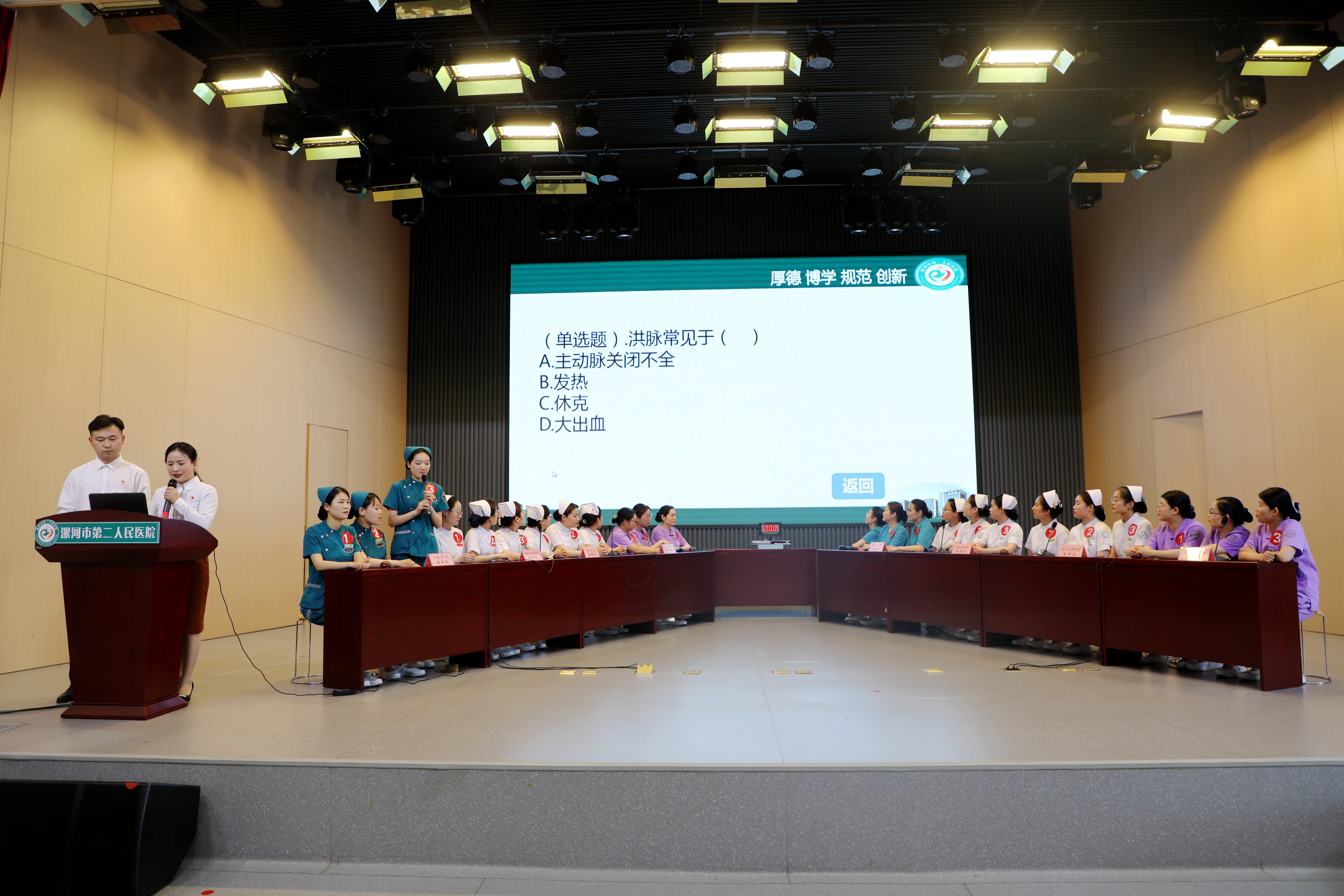 為進一步提高護理人員的整體業(yè)務(wù)素養(yǎng),全面夯實護理人員專業(yè)知識內(nèi)涵,提升護理服務(wù)水平。5月 8日下午,在5.12國際護士節(jié)來臨之際,市二院在十二樓學術(shù)報告廳舉行第二屆護理知識競賽總決賽。院長魏松及領(lǐng)導班子成員、部分職能科長和各科室護理人員代表約100余人參加了此次競賽活動。