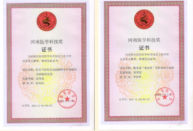 漯河市骨科醫(yī)院專家團(tuán)隊(duì)再次榮獲河南省醫(yī)學(xué)科技獎(jiǎng)