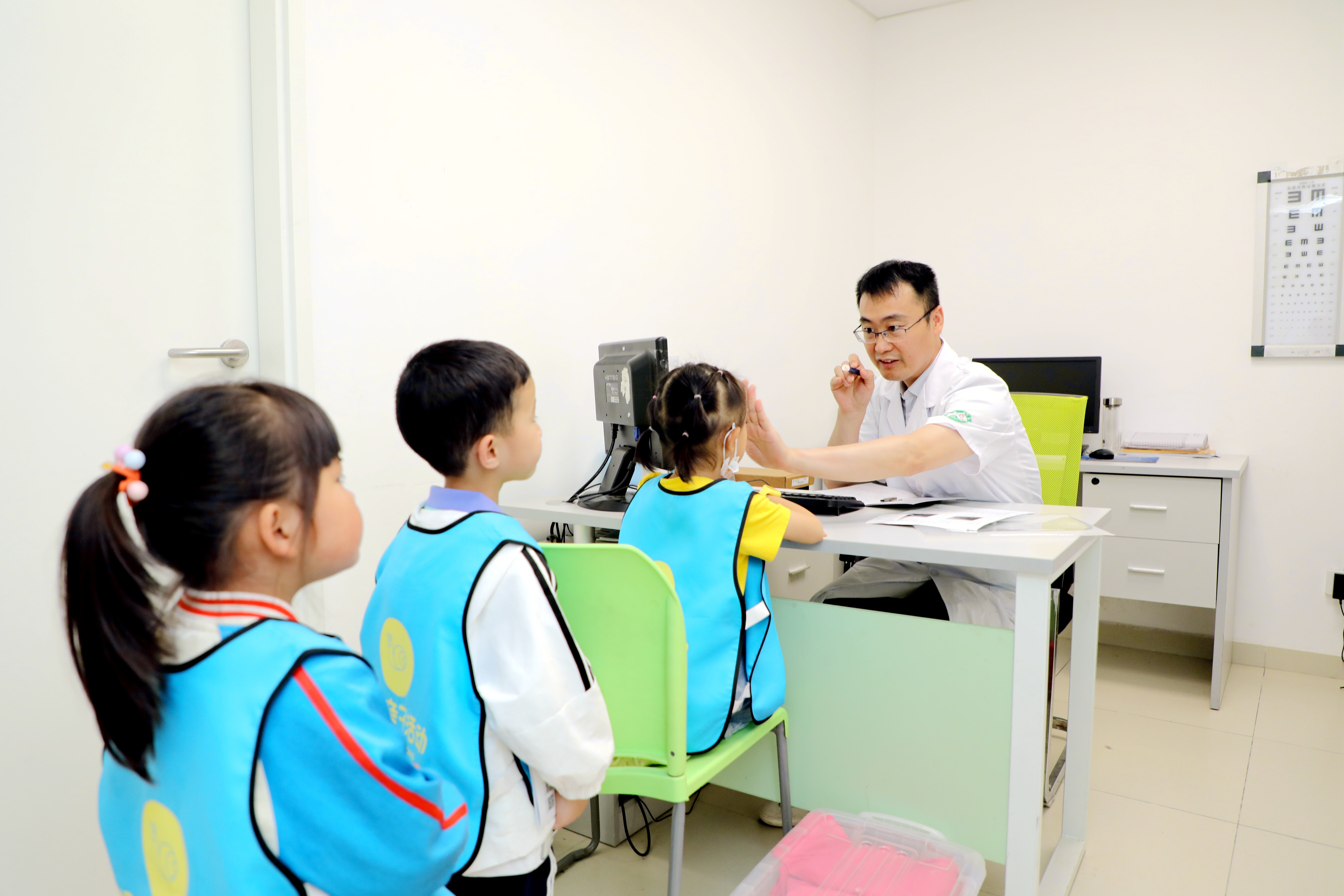 首先,由視訓(xùn)師董晗麗帶領(lǐng)小朋友們參觀了眼科門(mén)診、視覺(jué)康復(fù)訓(xùn)練中心、眼視光配鏡中心,3D、4D視覺(jué)康復(fù)訓(xùn)練室。隨后,李立主任為大家科普了愛(ài)眼護(hù)眼知識(shí)并進(jìn)行有獎(jiǎng)問(wèn)答,詳細(xì)講解了眼睛的結(jié)構(gòu)功能,近視的形成,分享了科學(xué)防控近視的八大要點(diǎn),孩子們認(rèn)真聽(tīng)講、努力思考、積極發(fā)言。通過(guò)學(xué)習(xí),孩子們發(fā)現(xiàn),原來(lái)平時(shí)很多不好的習(xí)慣都會(huì)造成近視,保護(hù)眼健康要少看手機(jī)、電視、少玩平板游戲等。