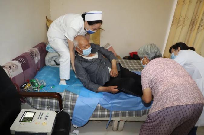村民張全昌大爺因為患過腦梗塞,常年坐輪椅,最近有點不舒服,想做個心電圖,漯河市骨科醫(yī)院(漯河醫(yī)專二附院)腫瘤內(nèi)科副主任醫(yī)師付暉專門了解了他的身體狀況,并進行了詳細檢查。派駐第一書記將自己的床作為臨時檢查床為村民提供方便。張大爺?shù)睦习樘漳棠陶f,一直都想帶老人去市里去看看,但是老人活動不方便,這次漯河醫(yī)專二附院的專家過來義診,還真的有這個項目,而且還免費,讓我們在家里看病,感謝黨的好政策。