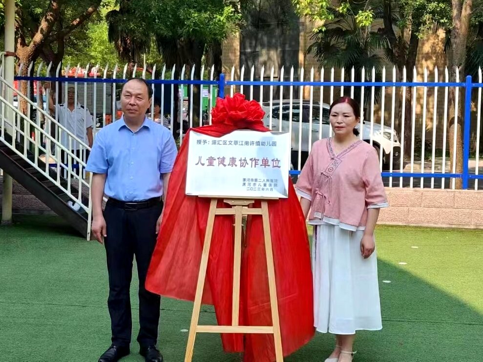 儀式現(xiàn)場(chǎng),市二院紀(jì)委書記孟德陽(yáng)分別與七家幼兒園負(fù)責(zé)人共同為“兒童健康協(xié)作單位”揭牌。