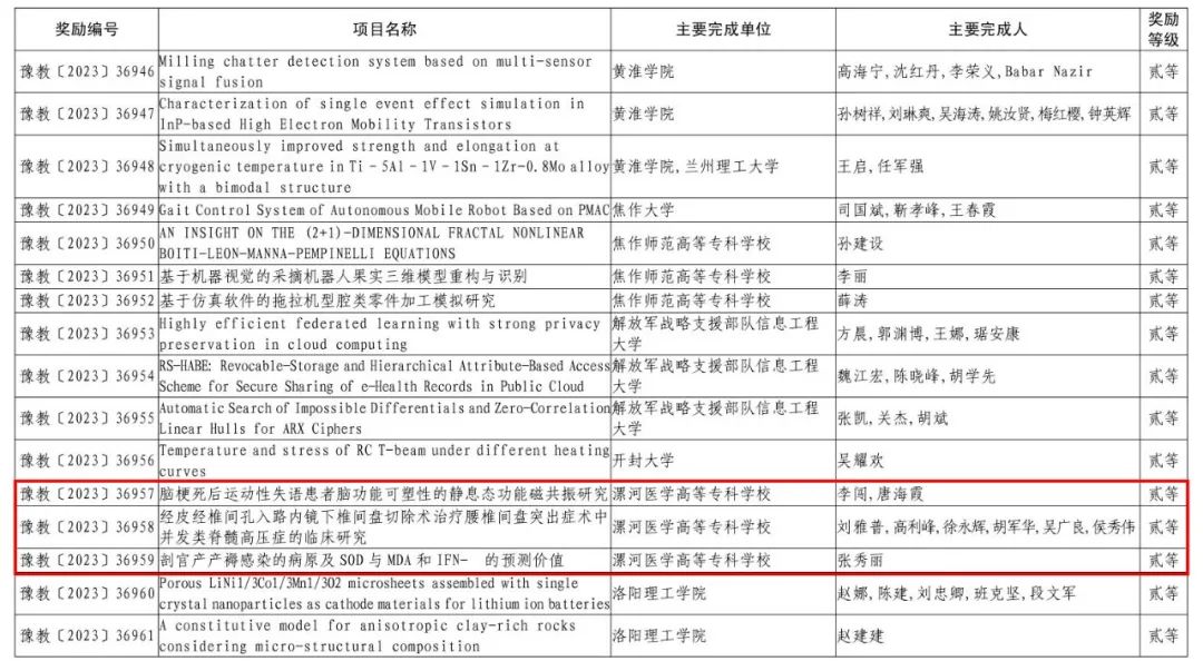 近日,河南省教育廳下發(fā)《關(guān)于公布2023年度科技成果獎獎勵名單的通知》: