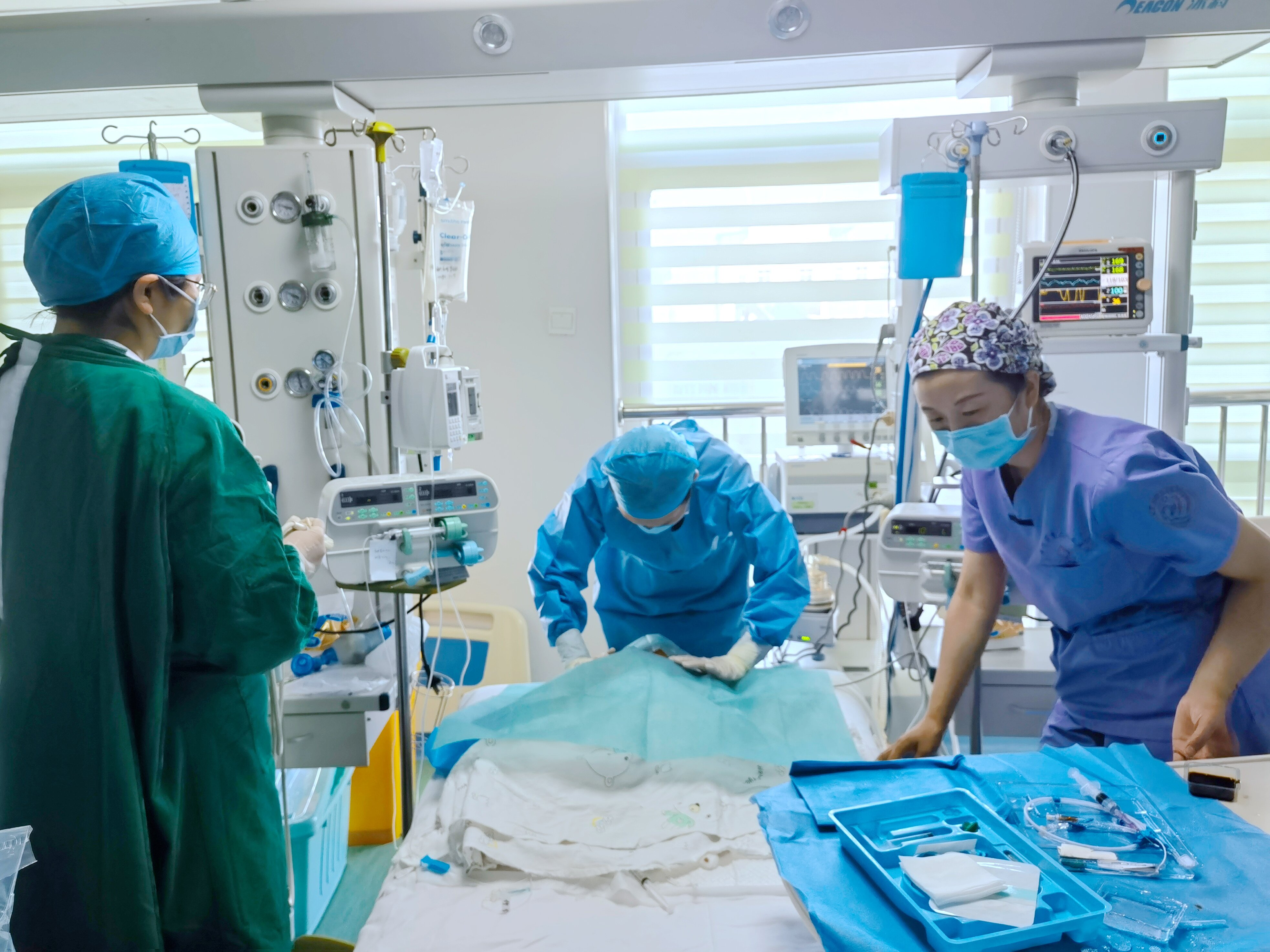 兒科急診醫(yī)生護(hù)士,兒童重癥醫(yī)學(xué)科主任、護(hù)士長(zhǎng)、值班醫(yī)生也火速趕到急診科參與搶救,16分鐘后患兒心率漸回升至110次/分、膚色轉(zhuǎn)紅潤(rùn)。隨后,迅速將患兒轉(zhuǎn)入兒童重癥醫(yī)學(xué)科進(jìn)一步診治,給予機(jī)械通氣、CVC置管、有創(chuàng)血壓監(jiān)測(cè)、擴(kuò)容、血管活性藥物運(yùn)用、糾正電解質(zhì)紊亂等治療,經(jīng)過(guò)近2小時(shí)的搶救,患兒心率140次/分、自主呼吸恢復(fù)、氧合正常、血壓維持正常、末梢循環(huán)恢復(fù)正常,患兒搶救成功。目前患兒病情仍危重,在兒科監(jiān)護(hù)室繼續(xù)機(jī)械通氣、控制抽搐、亞低溫、維持對(duì)癥等治療。