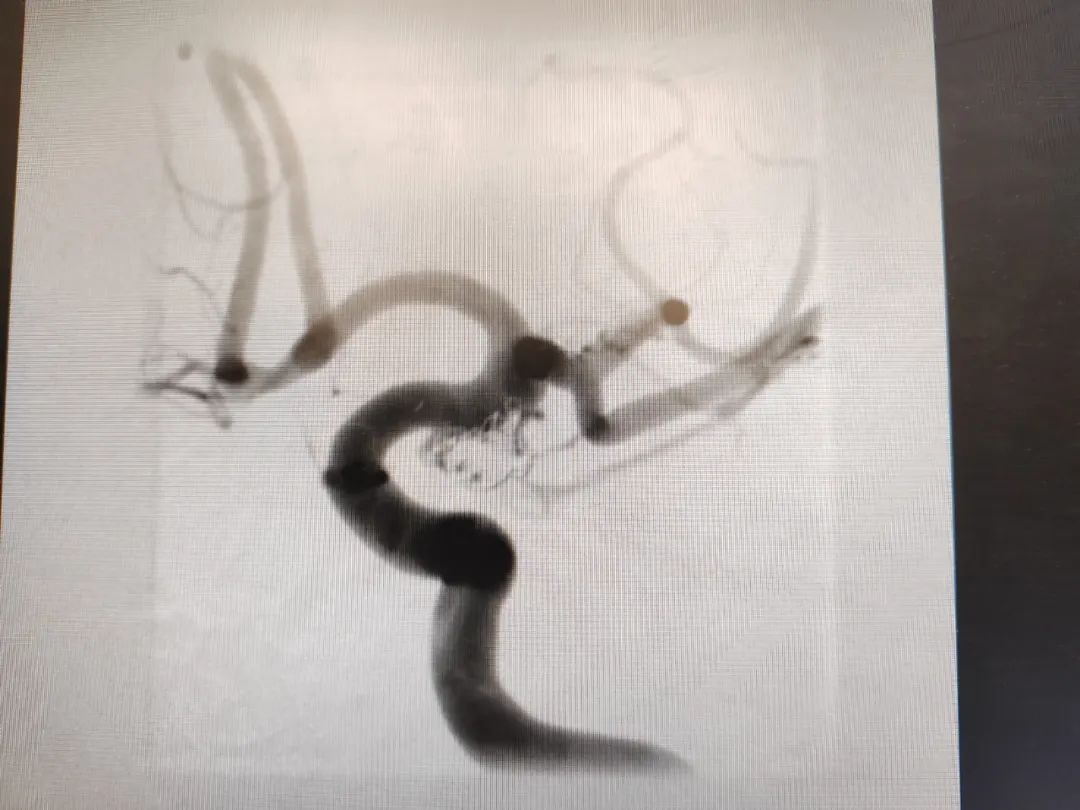 為制定下一步治療方案,在醫(yī)務(wù)科組織下,神經(jīng)內(nèi)科二病區(qū)曹愛華主任、王洵副主任醫(yī)師、神經(jīng)外科關(guān)毅主任醫(yī)師、麻醉科楊利民主任、醫(yī)學影像科王海波副主任等參與多學科聯(lián)合會診討論,各位專家充分評估病情,決定采用介入技術(shù)為患者行全腦血管造影術(shù)+支架輔助動脈瘤栓塞術(shù)。