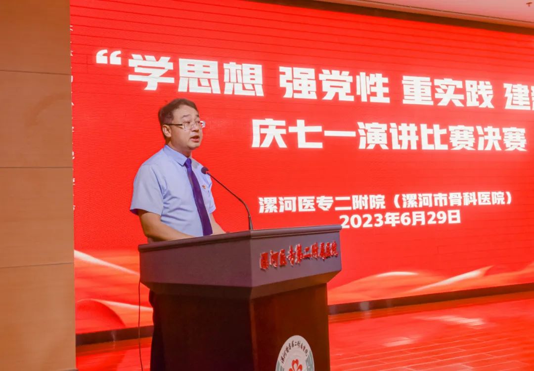 為全面貫徹落實黨的二十大精神,激勵全院黨員干部“學(xué)思想、強黨性、重實踐、建新功”,在黨的102歲生日到來之際,6月29日下午,漯河市骨科醫(yī)院(漯河醫(yī)專二附院)舉辦慶“七一”演講比賽。院黨委書記柴運洪出席活動并致辭,醫(yī)院領(lǐng)導(dǎo)班子、市委派駐醫(yī)院特派員以及中層干部、黨員代表、職工代表參加。