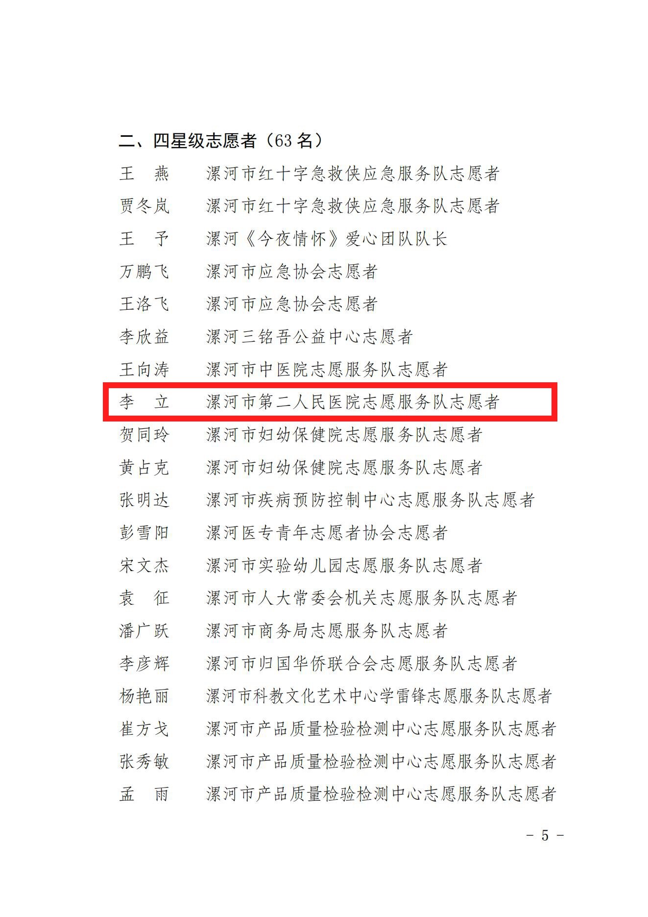 市二院眼科李立主任被評為2023年漯河市四星級志愿者