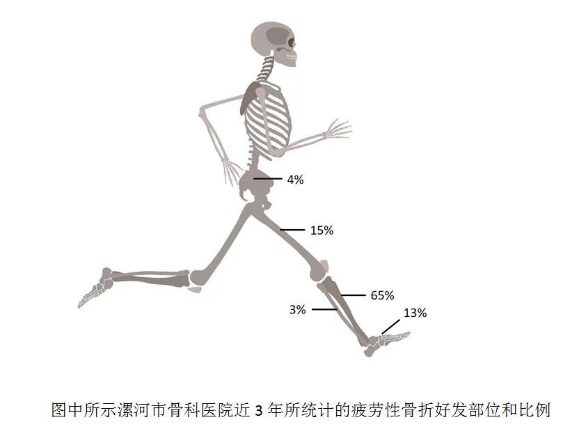 目前研究發(fā)現(xiàn),疲勞性骨折最常發(fā)生的部位是主要為承重比較大、運動比較劇烈的下肢,尤其膝關(guān)節(jié)周圍,如股骨遠端或者脛骨近端,還有踝關(guān)節(jié)周圍,如脛骨遠端或足踝部等部位。近3年我院共搜集了近百余例疲勞性骨折的患者,統(tǒng)計發(fā)現(xiàn)脛骨疲勞性骨折的發(fā)生率最高,其次是股骨、跗跖骨等。