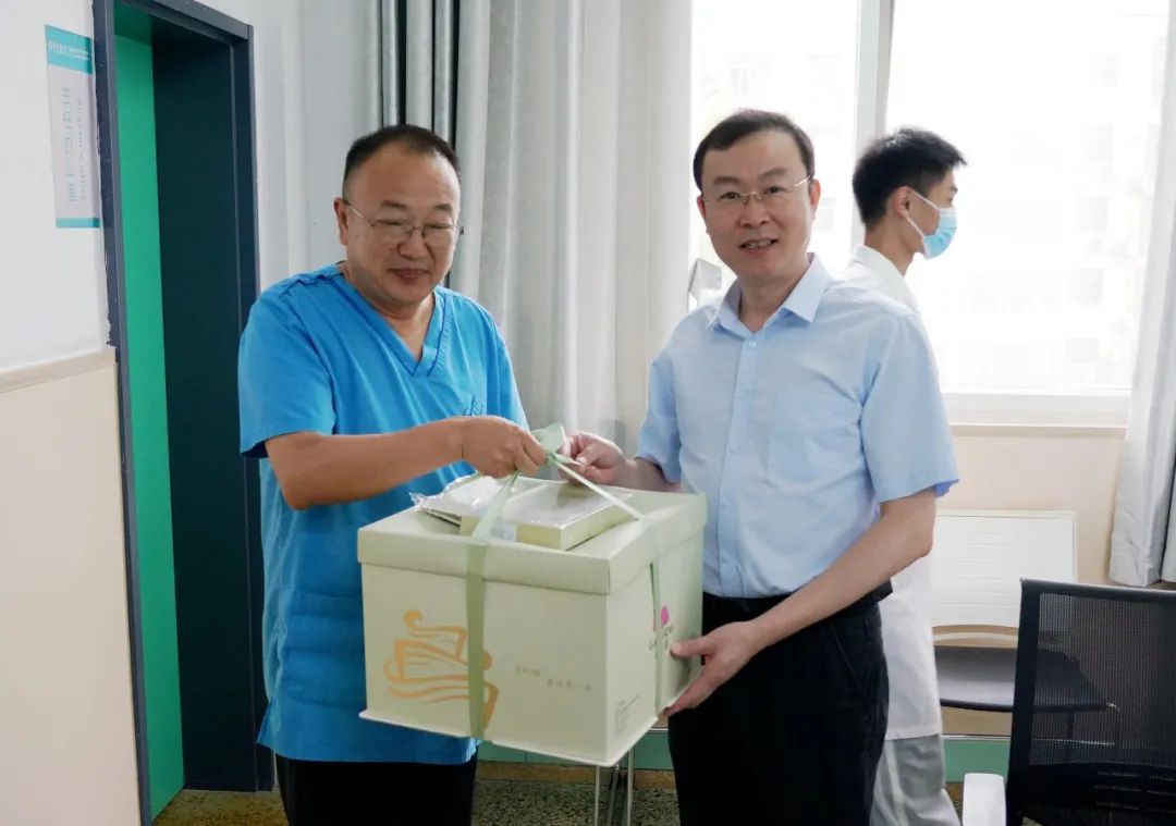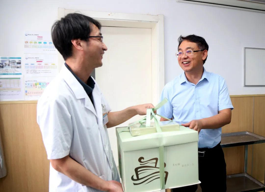 每到一處,院領(lǐng)導(dǎo)都將節(jié)日蛋糕和紀(jì)念筆送到醫(yī)師手中,并表示,希望廣大醫(yī)師要以人民健康為中心,始終堅(jiān)守醫(yī)者仁心的職業(yè)信仰,不斷提高醫(yī)療水平和服務(wù)質(zhì)量,為人民群眾提供更好的健康服務(wù)。作為醫(yī)務(wù)工作者,在關(guān)注患者生命健康的同時,也要注重自身健康,以強(qiáng)健的體魄、飽滿的精神,更好地投入到為人民健康而奉獻(xiàn)的偉大事業(yè)當(dāng)中。