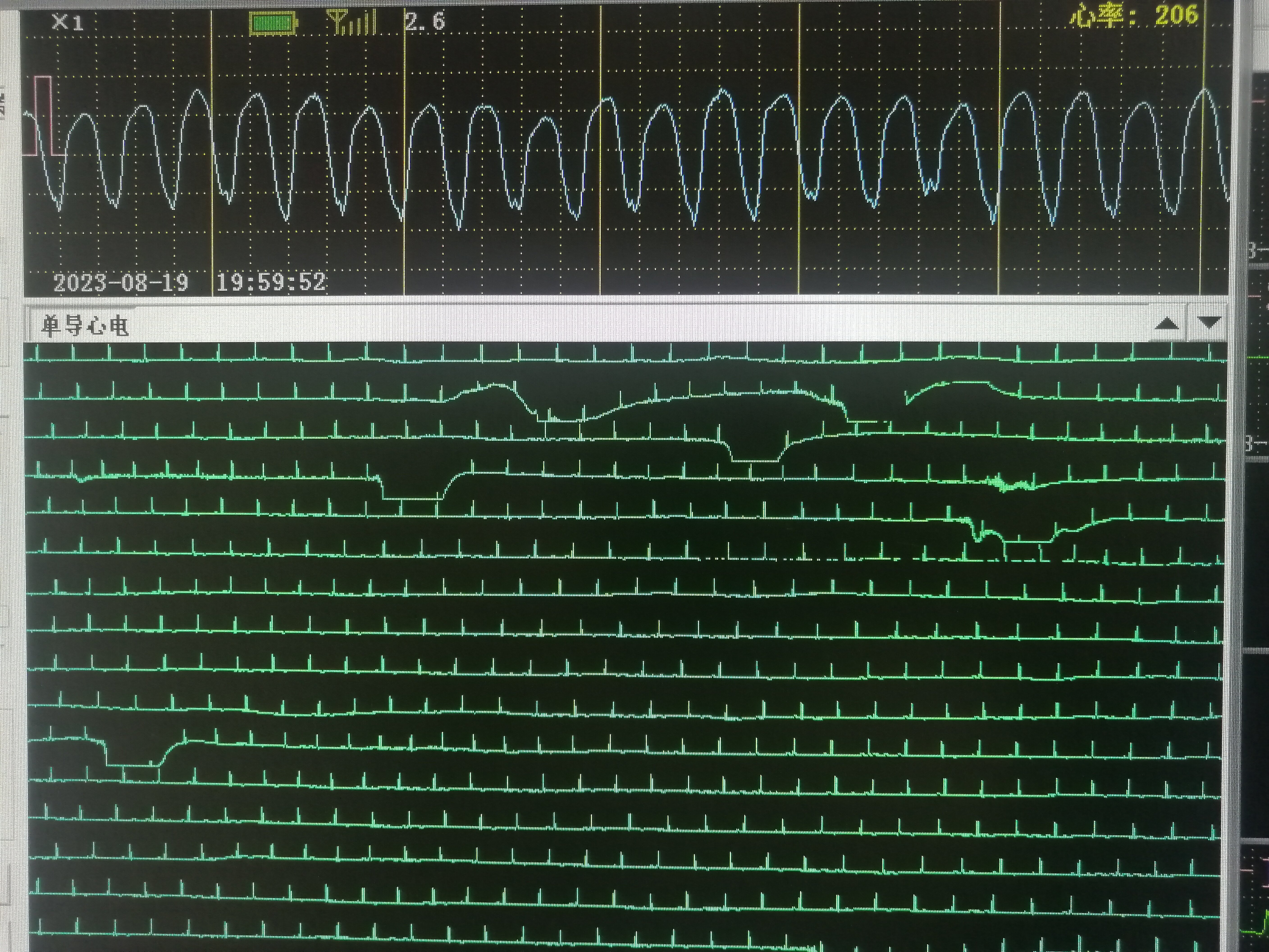 當(dāng)時,值班護士周夢瑤巡視病房后,一邊書寫護理記錄,一邊不時的通過遙測監(jiān)護中央屏幕觀察患者病情,突然發(fā)現(xiàn)17床患者出現(xiàn)監(jiān)護心電波形異常,便大聲呼喊:“楊醫(yī)生,快來看17床監(jiān)護有問題,趕快到病房看病人。”主治醫(yī)師楊光迅速查看監(jiān)護,“不好,患者發(fā)生了室顫。”憑借著豐富的臨床經(jīng)驗,楊光第一時間做出了準(zhǔn)確判斷,便也飛奔至病房,只見患者精神差,肢體抽搐,兩眼上翻,四肢末梢濕冷大汗,立即予以心肺復(fù)蘇,心臟電除顫,啟動應(yīng)急急救系統(tǒng),聯(lián)系老年醫(yī)學(xué)科值班醫(yī)生衛(wèi)青園協(xié)助搶救。經(jīng)過大家的努力,患者恢復(fù)竇性心律,生命體征平穩(wěn),意識轉(zhuǎn)為清醒,與家屬溝通后,轉(zhuǎn)入ICU進一步診治。截止目前患者病情穩(wěn)定。