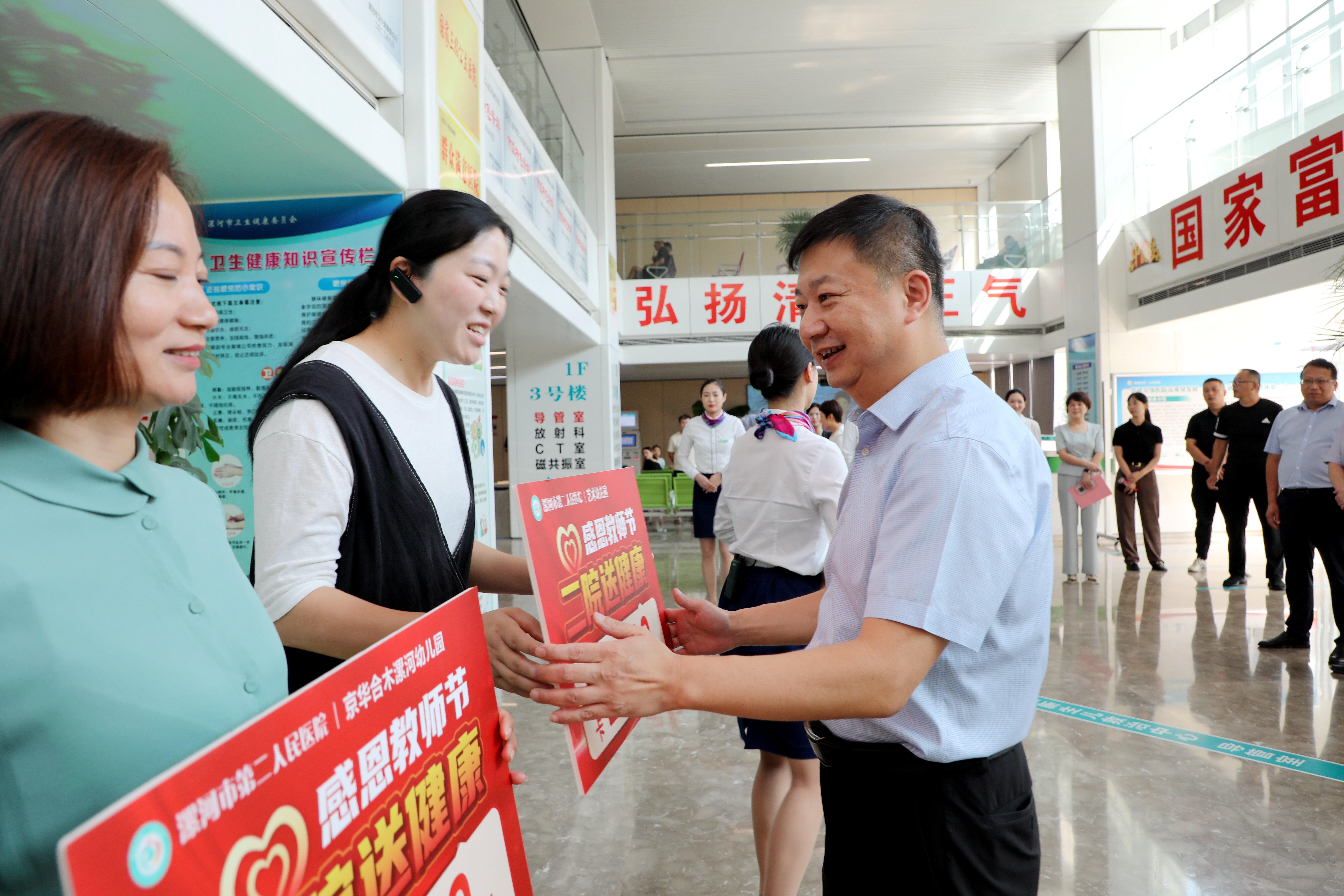 時(shí)值白露,金風(fēng)送爽。在第39個(gè)教師節(jié)來臨之際,為致敬辛勤奉獻(xiàn)的廣大一線幼教園丁,9月8日上午,漯河市第二人民醫(yī)院隆重舉行全市健康協(xié)作幼兒園“致敬教師節(jié) 二院送健康”活動啟動儀式,醫(yī)院黨委書記魏松、院長王瑾攜班子成員、行管職能科長,及部分臨床、門診科室負(fù)責(zé)人參加活動。啟動儀式由紀(jì)委書記孟德陽主持。