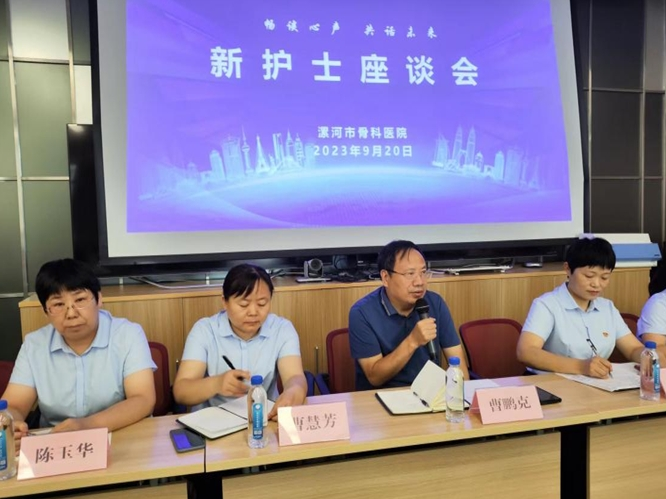 為加強(qiáng)醫(yī)院護(hù)理隊(duì)伍建設(shè),了解年輕護(hù)士思想動態(tài),引導(dǎo)新護(hù)士成長,凝聚新生力量,切實(shí)解決他們在工作中遇到的問題和困難,近日,漯河市骨科醫(yī)院(漯河醫(yī)專二附院)護(hù)理部舉辦新護(hù)士座談會。副院長曹鵬克、護(hù)理部副主任趙春紅、曹慧芳、王爽及科室護(hù)士長代表出席會議,會議由護(hù)理部副主任王爽主持。