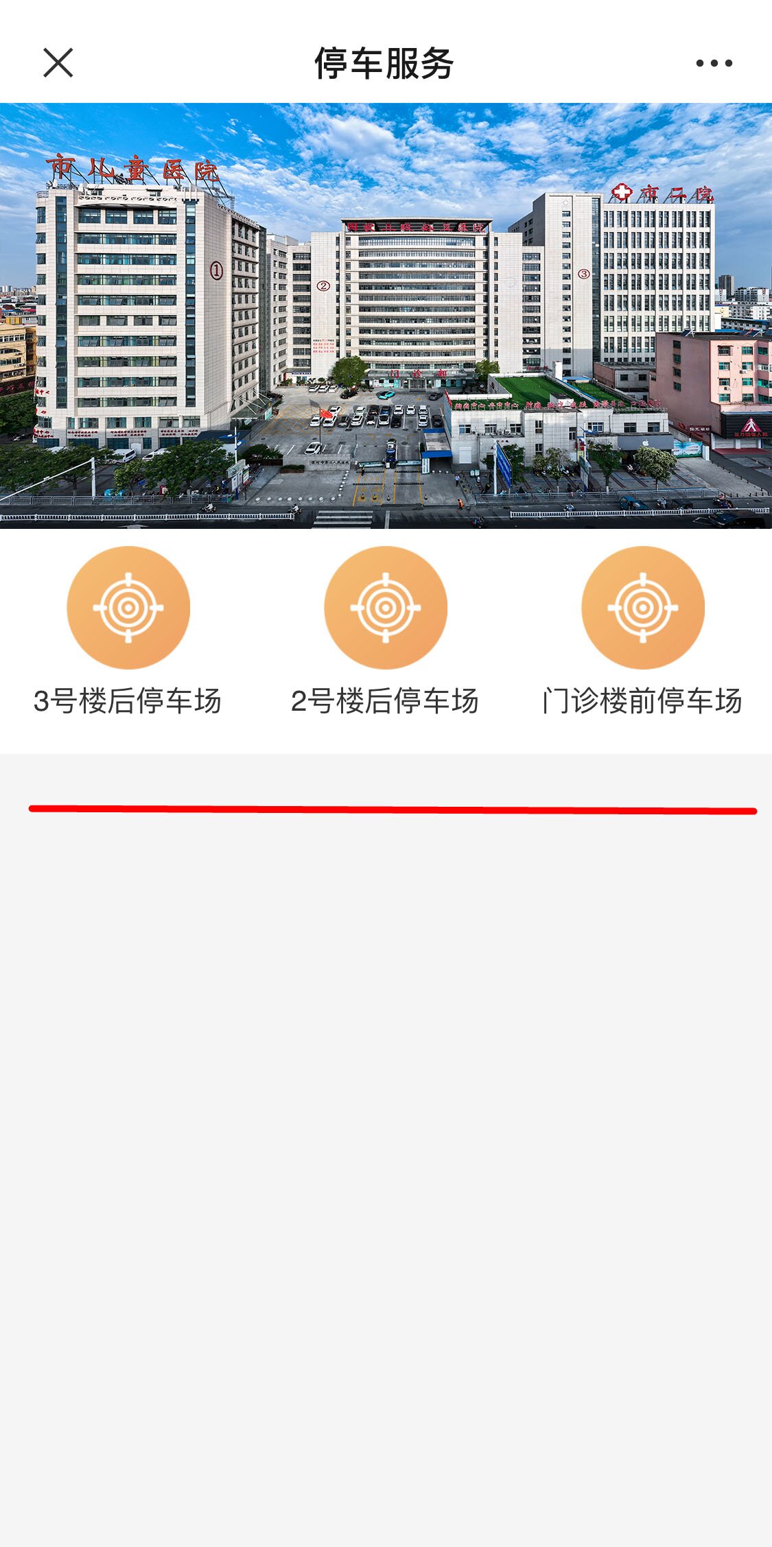 03.分別點(diǎn)擊“門診樓前停車場(chǎng)”、“2號(hào)樓后停車場(chǎng)”、“3號(hào)樓后停車場(chǎng)”三個(gè)模塊,這樣就可以提前了解實(shí)時(shí)停車位狀況啦!
