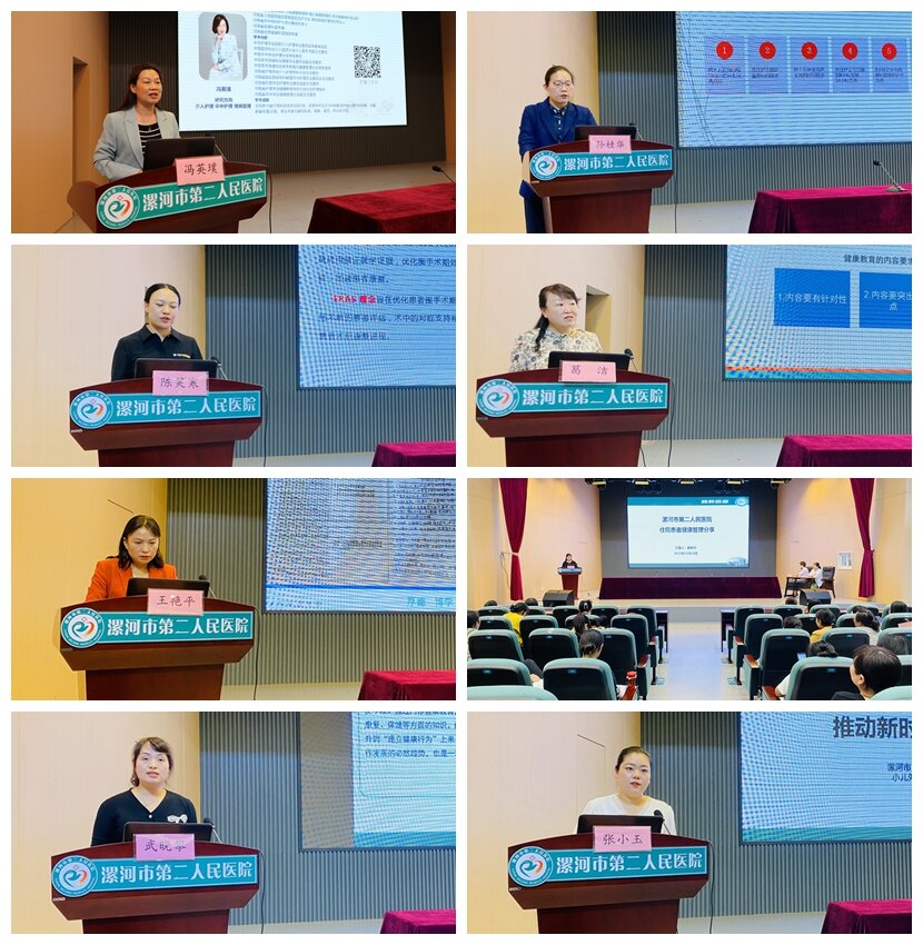 學(xué)術(shù)交流階段,河南省人民醫(yī)院腦血管病醫(yī)院總護(hù)士長(zhǎng)馮英璞教授以《基于專(zhuān)科評(píng)估的腦卒中患者健康教育方案的制定及臨床實(shí)踐》為題,全面闡述了臨床護(hù)理工作中如何做好患者的健康指導(dǎo),結(jié)合實(shí)例講解通過(guò)對(duì)患者健康教育方案的制定去實(shí)現(xiàn)全生命周期的健康管理的重要性;漯河市中心醫(yī)院孫桂華講解了《信息化+健康教育臨床路徑化》;漯河市骨科醫(yī)院陳笑寒講解了《加速康復(fù)外科健康教育的應(yīng)用》;漯河市第六人民醫(yī)院葛潔講解了《健康教育 我們?cè)诼飞稀?;郾城區(qū)人民醫(yī)院王艷平 講解了《健康教育在優(yōu)質(zhì)護(hù)理服務(wù)中的臨床應(yīng)用》;漯河市第二人民醫(yī)院蔡新華、武曉攀、張小玉分別用大量實(shí)例進(jìn)行了門(mén)診、病房健康教育案例分享。參會(huì)代表認(rèn)真聽(tīng)講、互動(dòng)環(huán)節(jié)踴躍交流,積極探討, 為臨床健康教育事業(yè)創(chuàng)新發(fā)展建言獻(xiàn)策,會(huì)議現(xiàn)場(chǎng)學(xué)術(shù)氛圍濃厚。