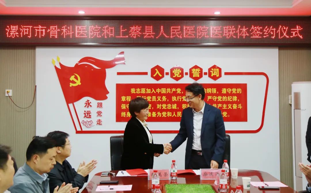 為全面貫徹落實國家醫(yī)藥衛(wèi)生體制改革精神,推進(jìn)分級診療制度建立,加快構(gòu)建優(yōu)質(zhì)高效的醫(yī)療衛(wèi)生服務(wù)體系,提升基層醫(yī)療衛(wèi)生機(jī)構(gòu)服務(wù)能力,10月19日,市骨科醫(yī)院(漯河醫(yī)專二附院)與上蔡縣人民醫(yī)院簽訂醫(yī)聯(lián)體合作協(xié)議。市骨科醫(yī)院領(lǐng)導(dǎo)柴運(yùn)洪、李奎、欒豐年、吳廣良,上蔡縣人民醫(yī)院領(lǐng)導(dǎo)魏美榮、李國選、聶鑫磊、李二民參加簽約儀式。