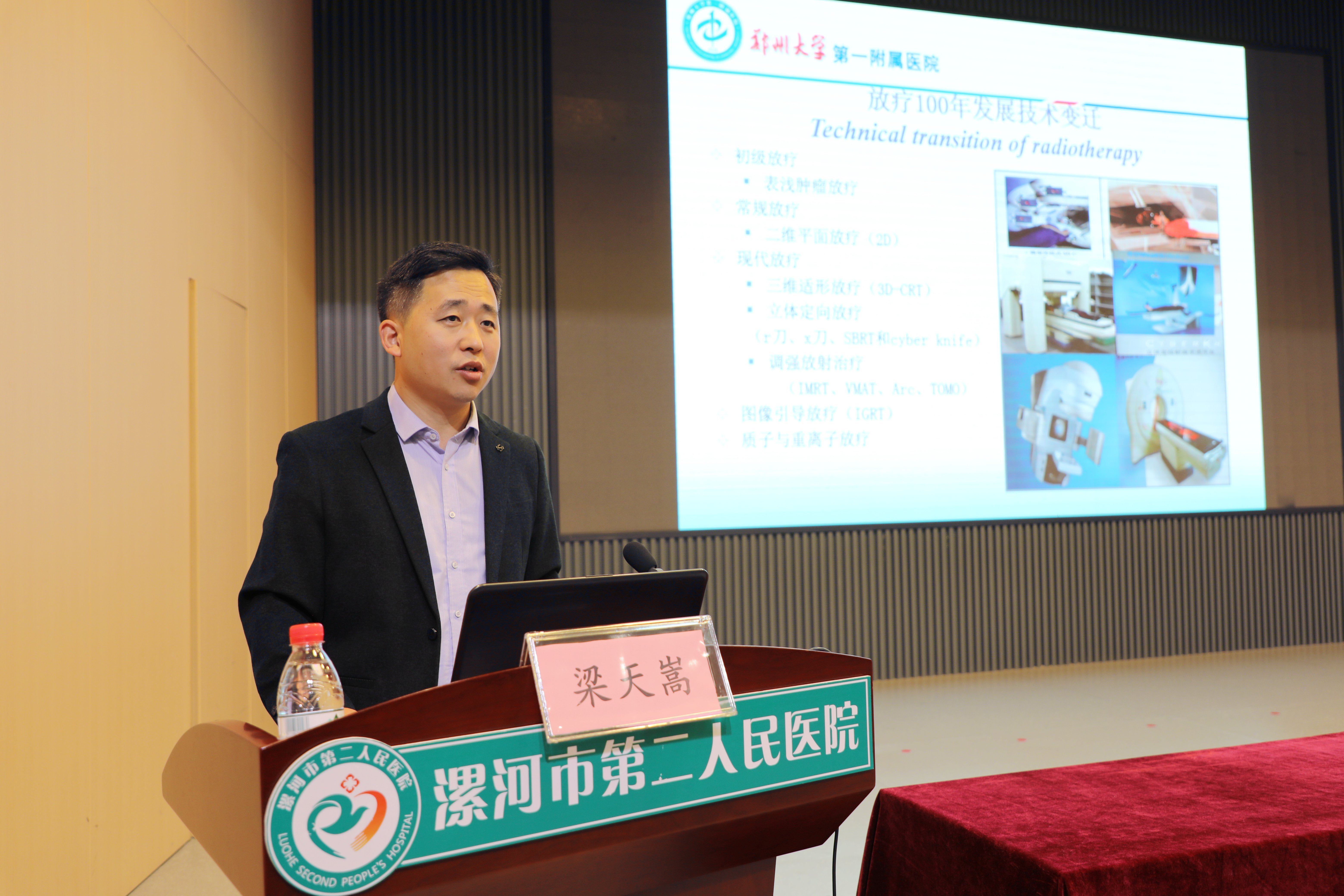 鄭州大學第一附屬醫(yī)院惠濟院區(qū)腫瘤一病區(qū)主任梁天嵩教授以《放療100年發(fā)展及角色轉變》為題,從最初表淺放療到深部放療、從二維到三維放射等,精彩地講述了腫瘤放射治療百年發(fā)展及技術革新。