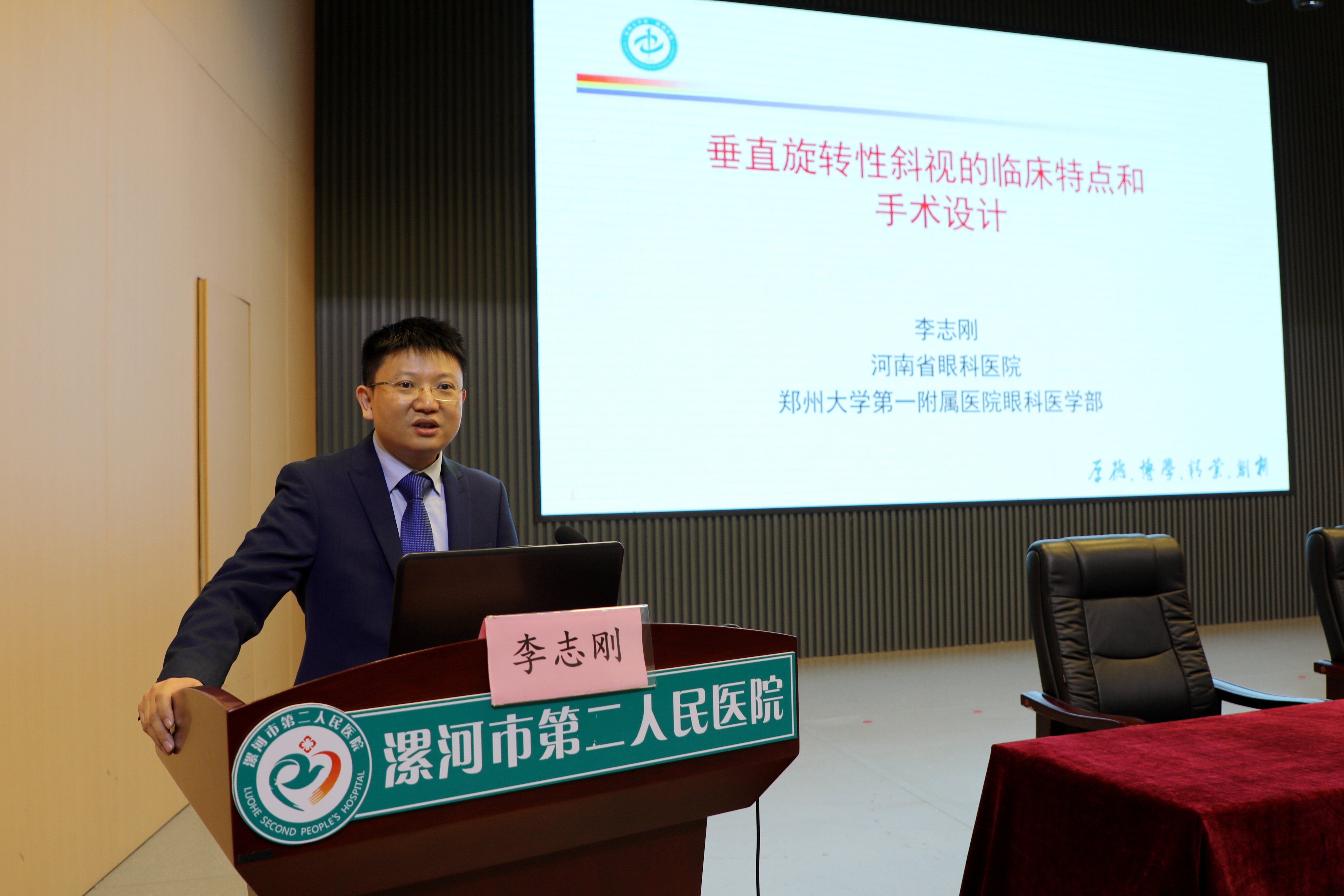 學術會上,鄭州大學第一附屬醫(yī)院李志剛教授作了《垂直旋轉性斜視的臨床特點和手術設計》專題講座,針對垂直旋轉性斜視的臨床特點,及手術設計做了詳細講解。