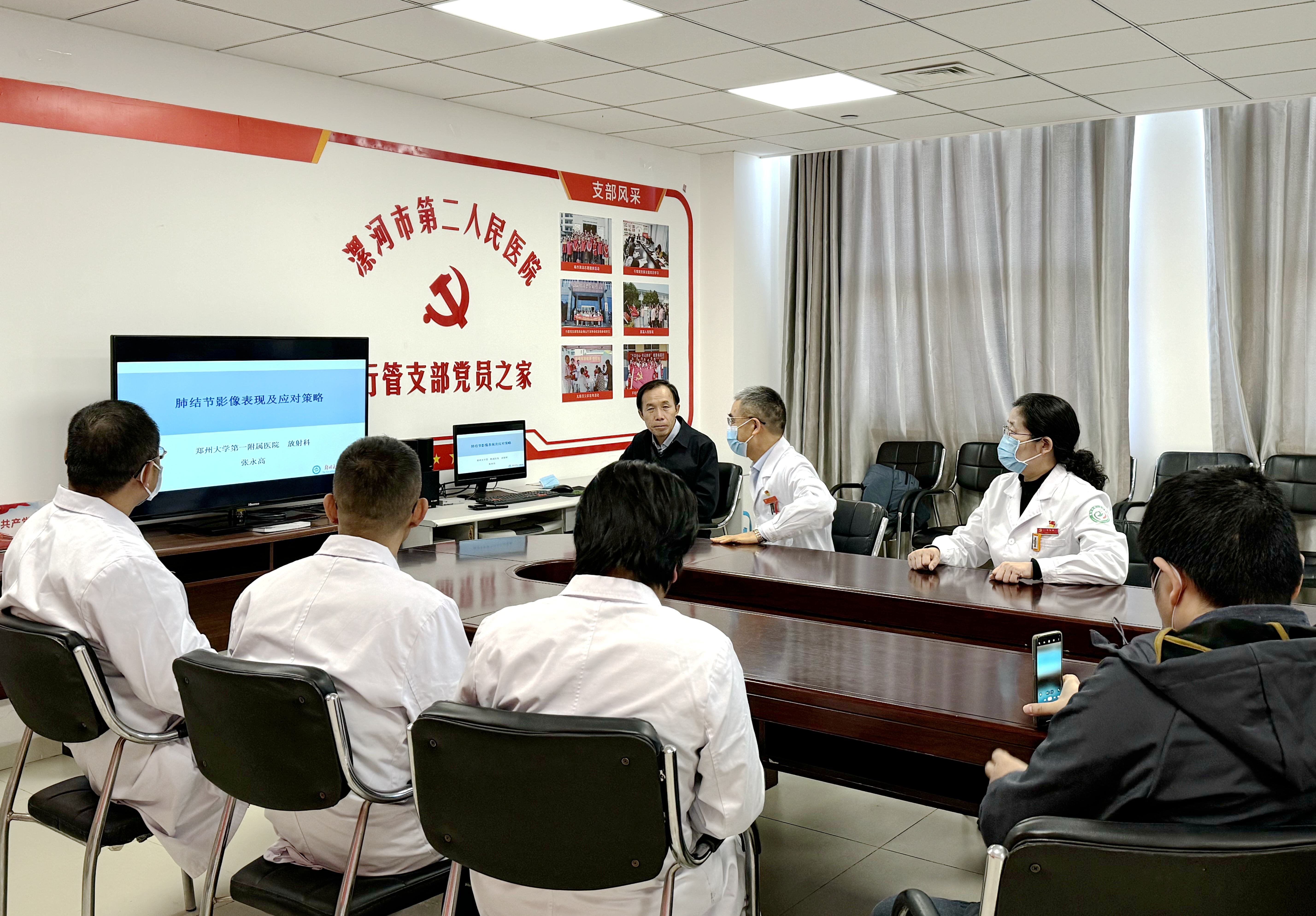 為了能給肺結(jié)節(jié)患者進(jìn)行全面評(píng)估,準(zhǔn)確判斷結(jié)節(jié)的性質(zhì),提供精準(zhǔn)的診療方案。近日,鄭州大學(xué)一附院放射科副主任、主任醫(yī)師張永高教授蒞臨市二院肺結(jié)節(jié)門診,進(jìn)行影像學(xué)會(huì)診、講座等,院長王瑾帶領(lǐng)肺結(jié)節(jié)團(tuán)隊(duì)陪同。