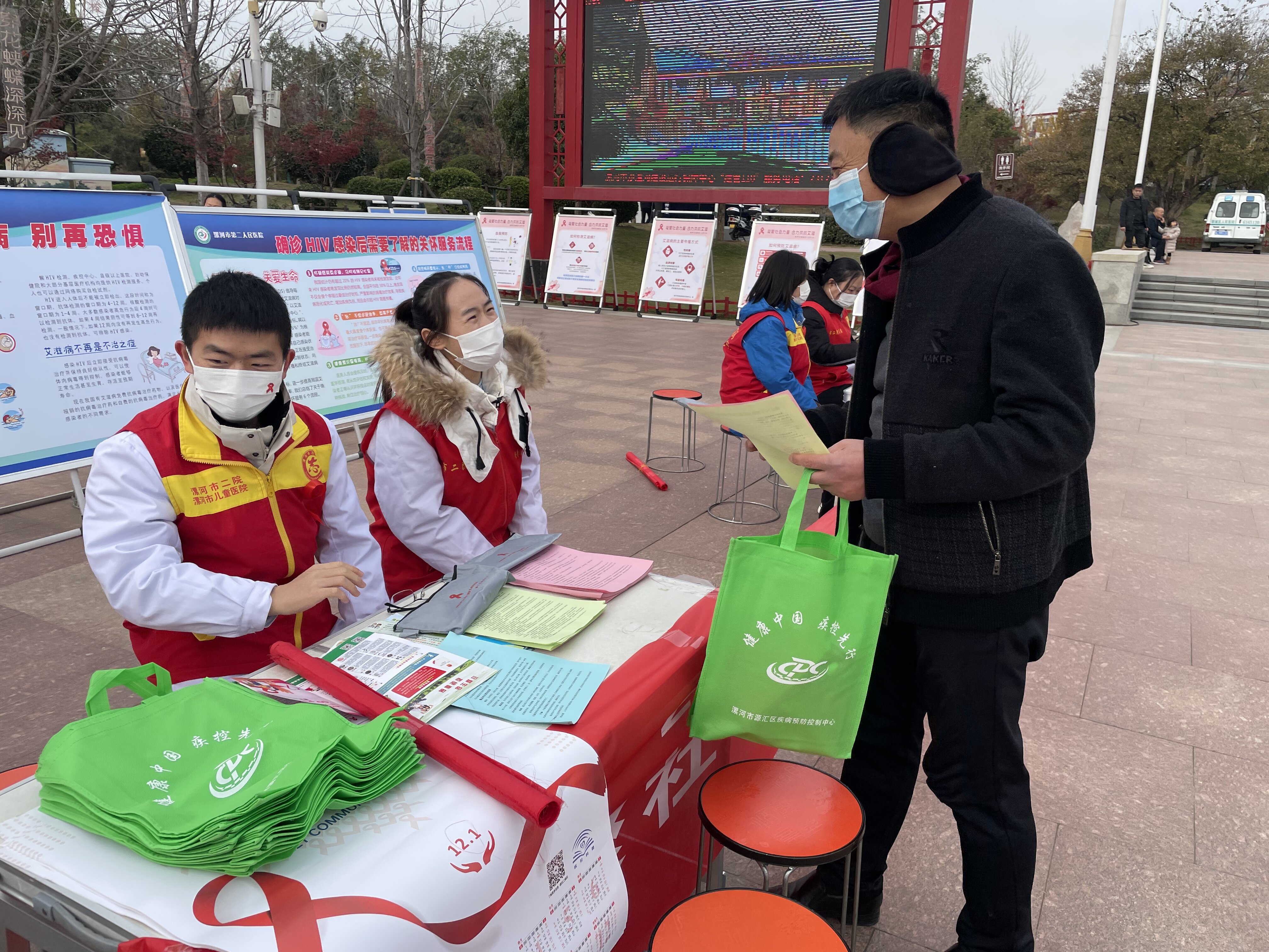 在第36個世界艾滋病日來臨之際,為了營造全民參與治艾防艾的宣傳氛圍,提高群眾對艾滋病的認識,市二院積極響應(yīng)市衛(wèi)健委統(tǒng)一部署安排,于11月30日上午,組織疾控科、皮膚科、中醫(yī)針灸科、內(nèi)鏡室等相關(guān)科室專家、志愿者到紅楓廣場進行“凝聚社會力量 合力共抗艾滋”主題宣傳活動。