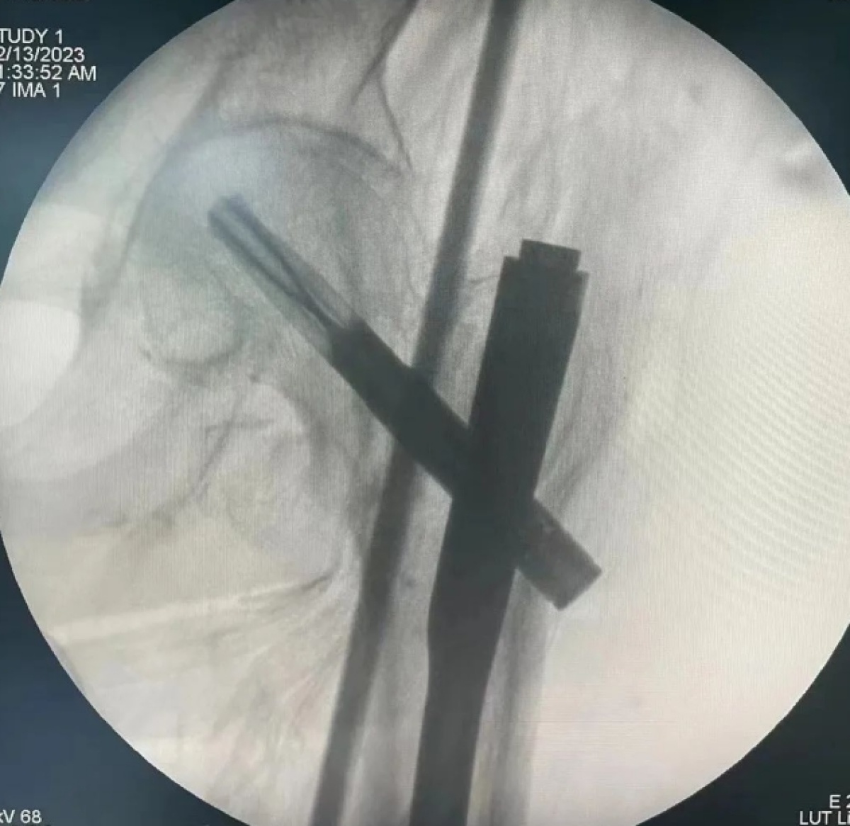 患者入室后,超聲引導(dǎo)下橈動(dòng)脈穿刺置管實(shí)時(shí)監(jiān)測(cè)血壓,方便術(shù)中維持循環(huán)穩(wěn)定。麻醉科團(tuán)隊(duì)為患者順利施行超聲引導(dǎo)下左側(cè)高位髂筋膜阻滯,減少椎管內(nèi)麻醉時(shí)側(cè)身擺體位的疼痛。該患者腰椎退行病變及骨質(zhì)增生嚴(yán)重,椎管內(nèi)麻醉穿刺困難,麻醉科團(tuán)隊(duì)運(yùn)用超聲引導(dǎo)下椎管內(nèi)穿刺技術(shù)尋找合適的路徑,做到一針到位。在骨五科、手術(shù)室、麻醉科等科室醫(yī)護(hù)團(tuán)隊(duì)的通力配合下,成功為老人完成手術(shù)。手術(shù)過(guò)程順利,患者無(wú)疼痛等不適,術(shù)后平安返回病房。
