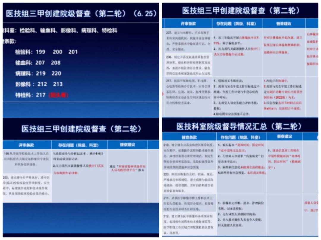 針對(duì)第一輪督查發(fā)現(xiàn)的問(wèn)題,每個(gè)科室針對(duì)問(wèn)題,積極完善。病理科在工作人員少、病理實(shí)驗(yàn)室(院內(nèi)、學(xué)校實(shí)驗(yàn)室)需要重新改造的情況下,科室人員在負(fù)責(zé)人趙路的帶領(lǐng)下,加班加點(diǎn)制作、完善三甲創(chuàng)建相關(guān)資料。 影像科在三位主任的帶領(lǐng)下,發(fā)揮全科、全員優(yōu)勢(shì),每一項(xiàng)任務(wù)布置下去,責(zé)任到人,在規(guī)定時(shí)間內(nèi)按時(shí)完成。輸血科針對(duì)評(píng)審條款要求,結(jié)合輸血自身特點(diǎn),完善、優(yōu)化輸血管理體系文件,特別是制作的輸血科儀器臺(tái)賬,定點(diǎn)、定時(shí)、定人,更好實(shí)現(xiàn)了實(shí)驗(yàn)室儀器設(shè)備的管理、跟蹤,已作為儀器臺(tái)賬管理模版,在全院推廣使用。檢驗(yàn)科針對(duì)評(píng)審條款、依據(jù)iso15189實(shí)驗(yàn)室建設(shè)要求,與科室質(zhì)量與安全管理組成員 簽訂責(zé)任承諾書(shū),形成“人人關(guān)注質(zhì)量安全,人人參與質(zhì)量安全”的良好氛圍。