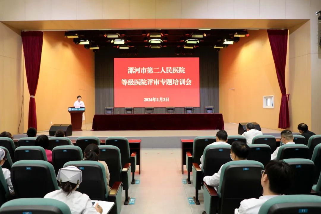 2024年1月3日—5日,市二院在學(xué)術(shù)報告廳召開為期3天的醫(yī)院等級評審培訓(xùn)會,醫(yī)院領(lǐng)導(dǎo)班子、全院行政職能、臨床、醫(yī)技科主任、護士長,數(shù)據(jù)管理員近200人參加培訓(xùn)。