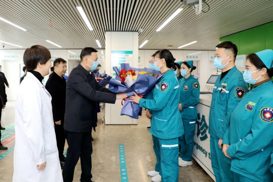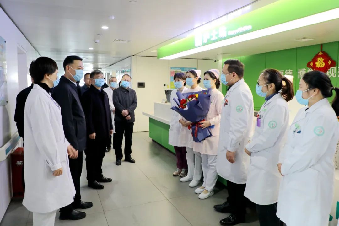 2月8日上午,新春佳節(jié)來臨之際,市衛(wèi)健委黨組成員、市紀(jì)委監(jiān)委派駐第二十一紀(jì)檢監(jiān)察組組長(zhǎng)朱黎明一行到市二院看望慰問一線醫(yī)護(hù)人員,并送上節(jié)日的問候。黨委書記魏松、院長(zhǎng)王瑾攜領(lǐng)導(dǎo)班子及相關(guān)職能部門負(fù)責(zé)人陪同慰問。