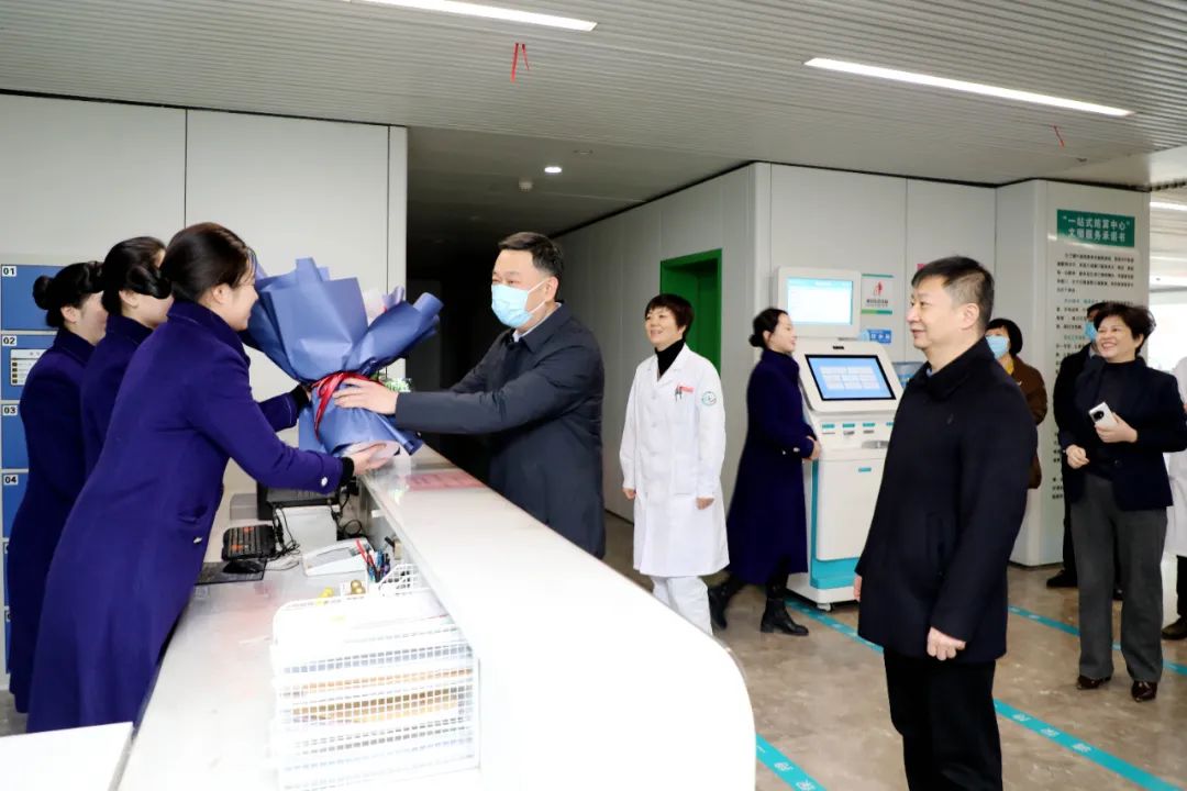 朱黎明一行先后到急診科、病人服務(wù)中心、影像科、皮膚科、中醫(yī)科、小兒心血管神經(jīng)血液科,小兒呼吸內(nèi)科看望慰問醫(yī)護(hù)人員,他表示,廣大醫(yī)護(hù)人員始終奮戰(zhàn)在醫(yī)療救治的最前線,承擔(dān)著光榮而艱巨的職責(zé)使命,為護(hù)佑全市人民健康提供了堅(jiān)實(shí)保障,在新春佳節(jié)到來之際,謹(jǐn)代表市衛(wèi)健委向辛勤奉獻(xiàn)的市二院全體醫(yī)護(hù)人員表達(dá)誠摯的感謝和新年的祝福。