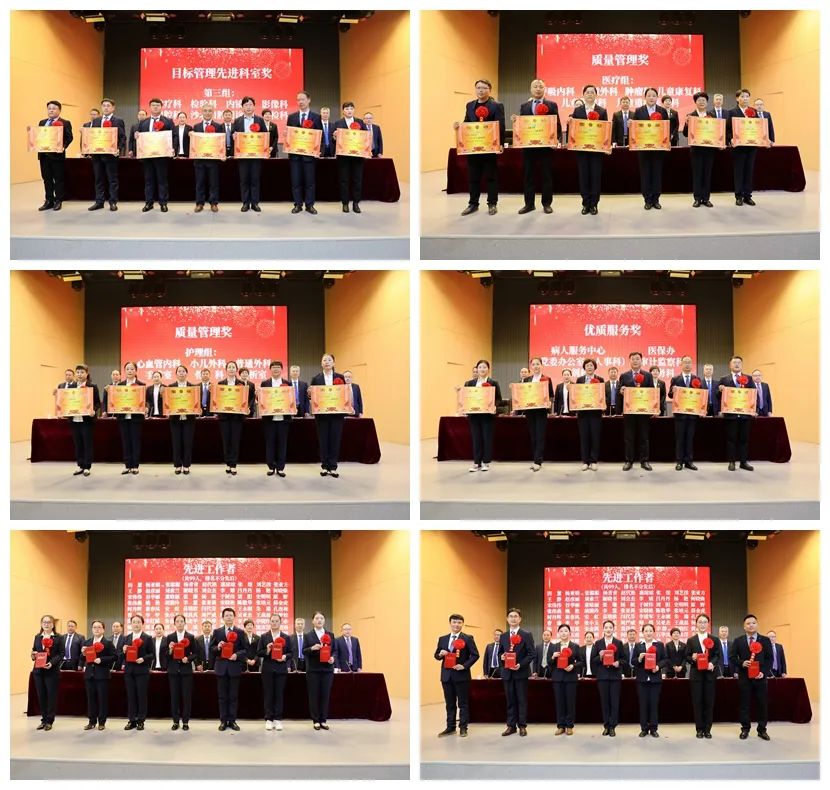 本次工作會(huì)是醫(yī)院開(kāi)啟2024年高質(zhì)量發(fā)展新篇章、奮進(jìn)三甲創(chuàng)建新征程關(guān)鍵節(jié)點(diǎn)上召開(kāi)的鼓干勁、聚合力的重要會(huì)議。副院長(zhǎng)謝彩玲、副院長(zhǎng)郭長(zhǎng)根、紀(jì)委書記孟德陽(yáng)、副院長(zhǎng)張曉東、工會(huì)主席李世學(xué)按照大會(huì)既定議程,依次宣讀了2023年度先進(jìn)集體、先進(jìn)工作者等表彰文件和表彰名單,對(duì)2023年度特殊貢獻(xiàn)獎(jiǎng)、目標(biāo)管理先進(jìn)科室、質(zhì)量管理獎(jiǎng)、優(yōu)質(zhì)服務(wù)獎(jiǎng)、先進(jìn)工作者進(jìn)行了表彰。被表彰科室代表和先進(jìn)個(gè)人代表披紅戴花,精神抖擻,從院領(lǐng)導(dǎo)手中接過(guò)象征榮譽(yù)和期望的獎(jiǎng)牌、獎(jiǎng)狀,熱烈的掌聲響徹學(xué)術(shù)報(bào)告廳,展現(xiàn)了二院人奮勇拼搏、干必出彩的良好精神風(fēng)貌,為新的一年工作擂響了戰(zhàn)鼓,鼓足了干勁。