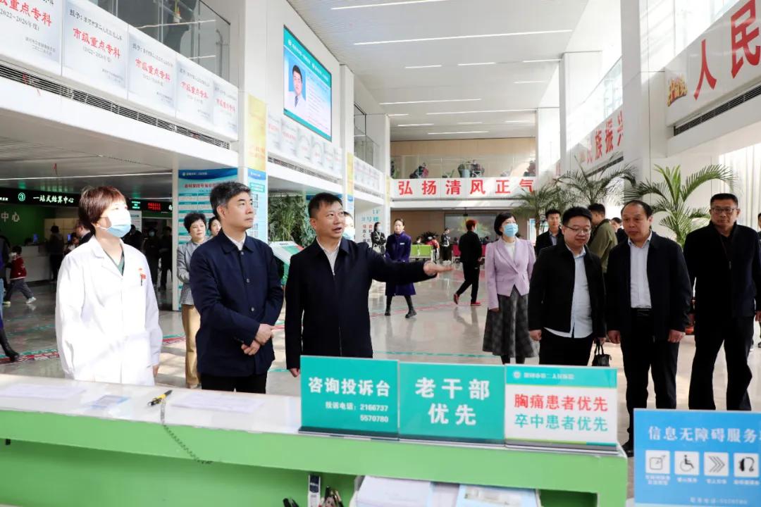 4月3日上午,市衛(wèi)健委黨組書記、主任宋耀生帶領(lǐng)市衛(wèi)健委創(chuàng)文督導(dǎo)組蒞臨市二院督導(dǎo)檢查創(chuàng)文工作,市二院黨委書記魏松,院長王瑾攜班子成員及相關(guān)職能部門負責同志陪同檢查。