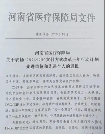 近日,在河南省醫(yī)療保障局公布的《關(guān)于表?yè)P(yáng)DRG/DIP支付方式改革三年行動(dòng)計(jì)劃先進(jìn)單位和先進(jìn)個(gè)人的通報(bào)》中,漯河市骨科醫(yī)院(漯河醫(yī)專二附院、漯河市立醫(yī)院)被授予河南省DRG/DIP支付方式改革三年行動(dòng)計(jì)劃先進(jìn)單位。