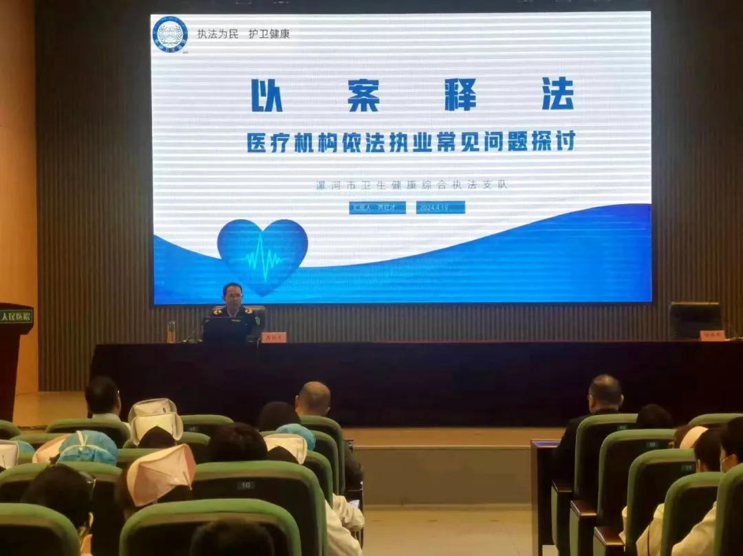 4月19日,市二院舉辦2024年度醫(yī)療衛(wèi)生法律法規(guī)專題培訓(xùn),特邀漯河市衛(wèi)生健康綜合執(zhí)法支隊(duì)副支隊(duì)長(zhǎng)芮紅才前來(lái)授課。各臨床科室醫(yī)、護(hù)、技等300余人到會(huì)學(xué)習(xí)。本次培訓(xùn)會(huì)由副院長(zhǎng)張曉東主持。