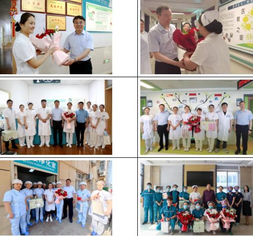 上午9點,醫(yī)院領(lǐng)導(dǎo)班子成員來到各個護(hù)理單元,為護(hù)理工作者送上精心準(zhǔn)備的鮮花、蛋糕和慰問品。每到一處,院領(lǐng)導(dǎo)們都與護(hù)理人員親切握手,并詳細(xì)詢問大家的工作和生活情況,表達(dá)醫(yī)院的關(guān)心和支持,送去節(jié)日的祝福。院領(lǐng)導(dǎo)高度贊揚了護(hù)士們在臨床工作中的辛勤付出和無私奉獻(xiàn),并表示護(hù)理工作者是醫(yī)院的寶貴財富,是患者康復(fù)的重要力量,各位的努力和付出,為醫(yī)院的發(fā)展做出了重要貢獻(xiàn)。