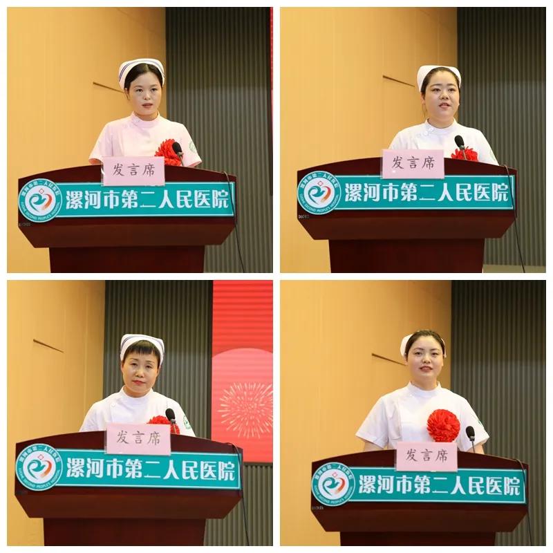 受表彰的市級(jí)優(yōu)秀護(hù)理團(tuán)隊(duì)代表小兒呼吸內(nèi)科胡媛媛、市級(jí)優(yōu)秀護(hù)士代表小兒外科張小玉、院級(jí)優(yōu)秀護(hù)理團(tuán)隊(duì)代表心血管內(nèi)科伊獻(xiàn)麗、院級(jí)優(yōu)秀護(hù)士代表神經(jīng)外科何孟麗分別做了典型發(fā)言。