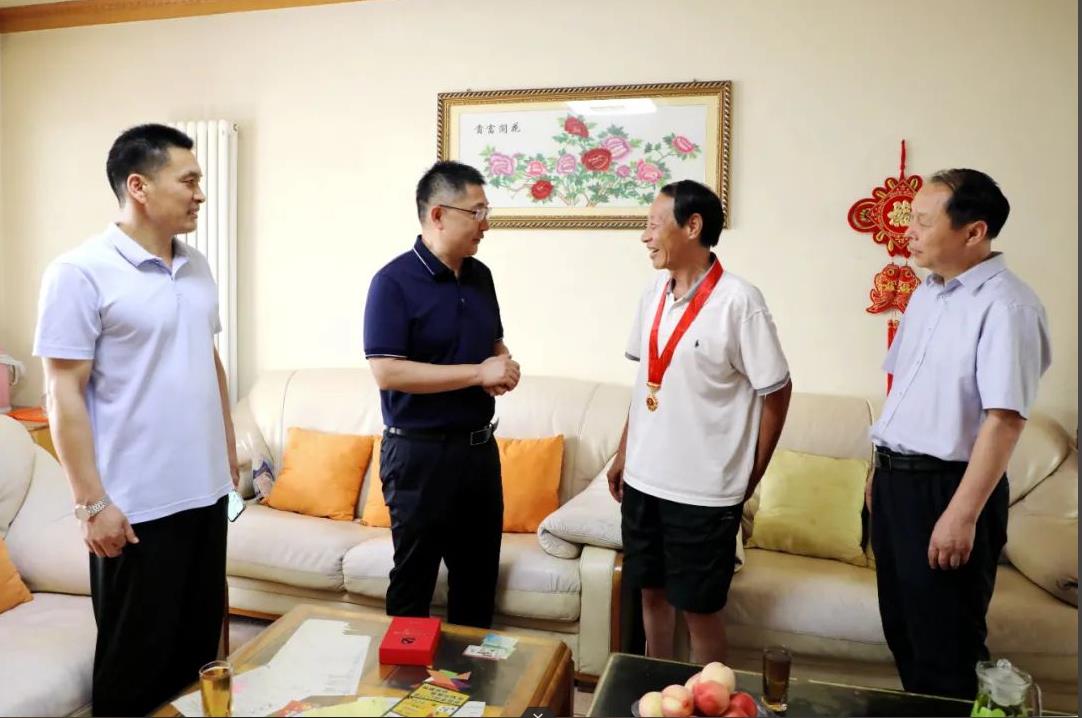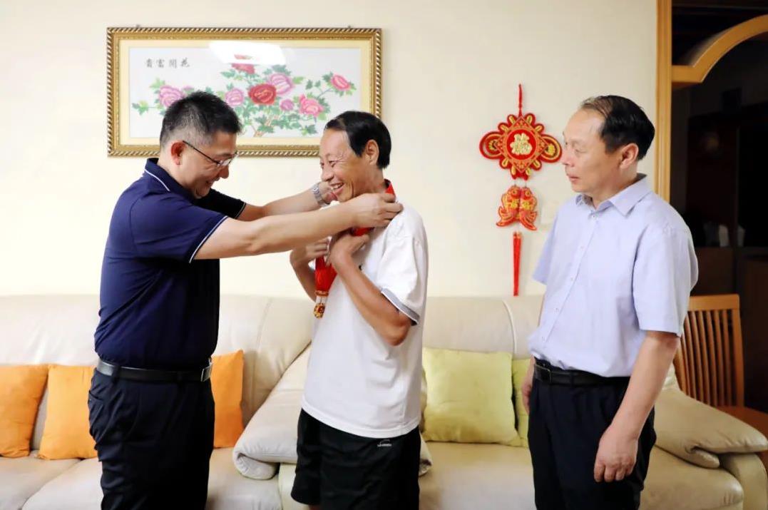 慰問過程中,王向良同志為謝學政同志戴上沉甸甸的紀念章,關(guān)切詢問謝學政同志及其家人的生活和身體狀況。孟德陽同志受院黨委的委托,向謝學政同志為醫(yī)院的發(fā)展所做出的辛勤付出、無私奉獻表達了衷心感謝,叮囑他保重身體,今后有什么困難要及時告知醫(yī)院,醫(yī)院是他永遠的后盾,并希望他一如既往地關(guān)心醫(yī)院工作,為醫(yī)院高質(zhì)量發(fā)展積極建言獻策。