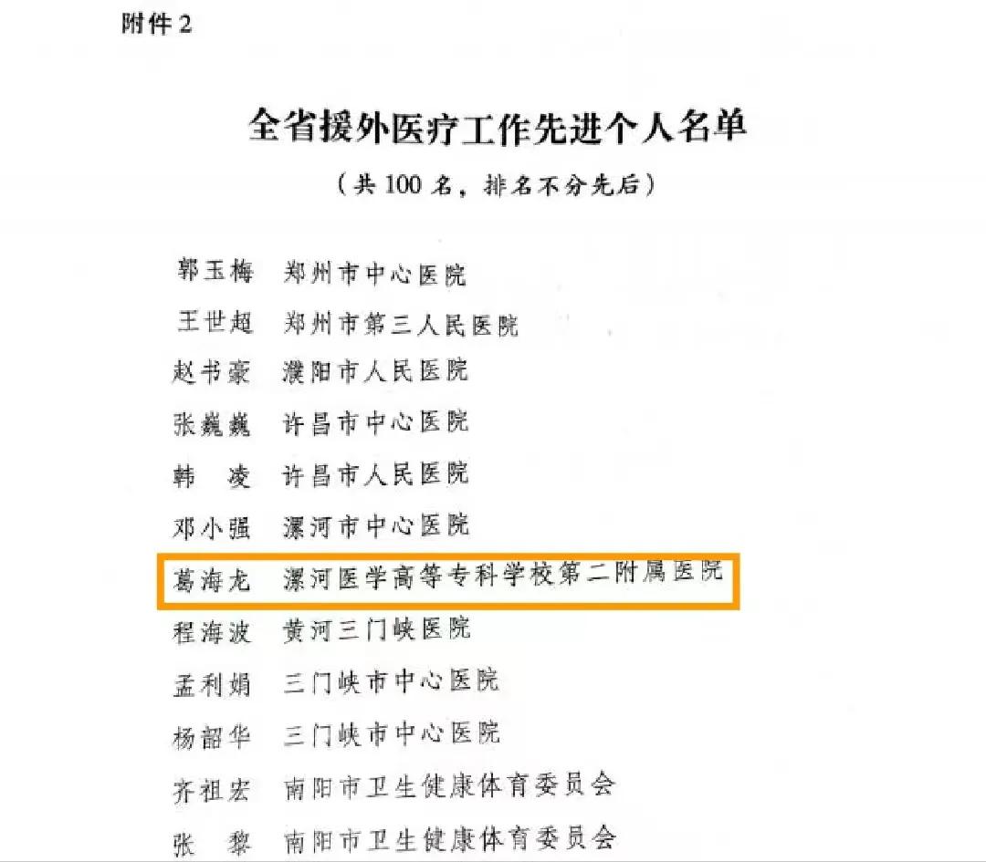 在紀(jì)念河南省承派援外醫(yī)療隊50周年的重要時刻,為表揚(yáng)先進(jìn)、樹立楷模,省衛(wèi)生健康委隆重舉行紀(jì)念大會,對包括援埃塞俄比亞中國醫(yī)療隊群體在內(nèi)的47個優(yōu)秀集體以及100名杰出個人進(jìn)行了通報表揚(yáng)。其中,漯河市骨科醫(yī)院(漯河醫(yī)專二附院、漯河市立醫(yī)院)葛海龍榮獲全省援外醫(yī)療工作先進(jìn)個人!
