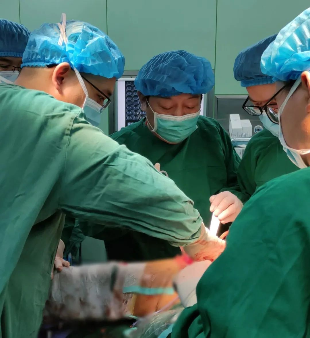 手術(shù)方案確定后,緊急啟動手術(shù)室,外科團隊首先對患者的腹腔內(nèi)損傷進行了探查和止血處理,術(shù)中診斷為創(chuàng)傷性小腸破裂、創(chuàng)傷性結(jié)腸破裂、腸系膜破裂傷、腹腔擠壓傷、腹膜炎等,并對患者進行橫結(jié)腸部分切除術(shù)、小腸破裂修補術(shù)、結(jié)腸造口術(shù)等。外科手術(shù)結(jié)束后,中醫(yī)骨傷科團隊緊急接臺,甄相周主任及楊冬松主任對患者進行了左脛腓骨開放性骨折清創(chuàng)術(shù)、脛骨外固定術(shù)、右下肢清創(chuàng)縫合術(shù)。整個手術(shù)過程歷時數(shù)小時,醫(yī)護人員始終保持著高度的專注和緊張,確保手術(shù)順利進行。術(shù)后,該患者轉(zhuǎn)入EICU進行密切監(jiān)護和治療。