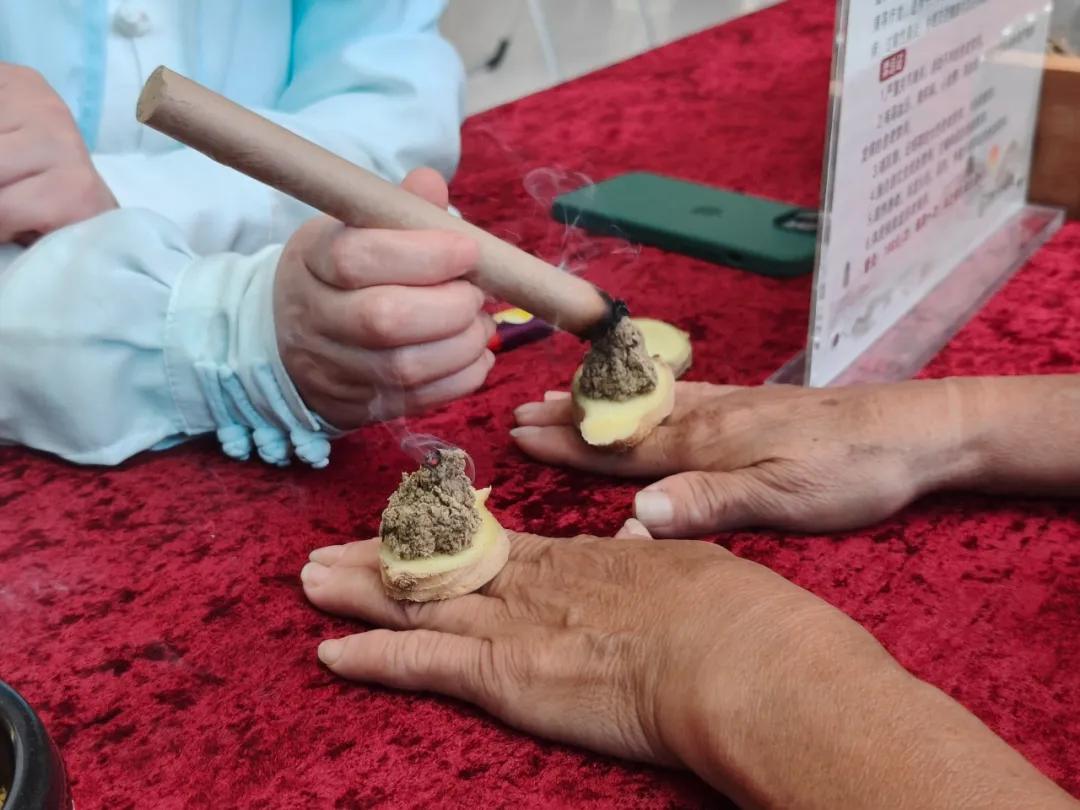 健康講座過后,腦二科主任付菊花為群眾進行一對一的義診服務(wù),給予把脈問診、開具健康處方及健康指導(dǎo);中醫(yī)骨干護士為群眾講解中醫(yī)養(yǎng)生知識,給予火龍罐、艾灸等中醫(yī)療法體驗;中藥師給予膳食指導(dǎo)和養(yǎng)生茶飲推薦,群眾表示很實用。