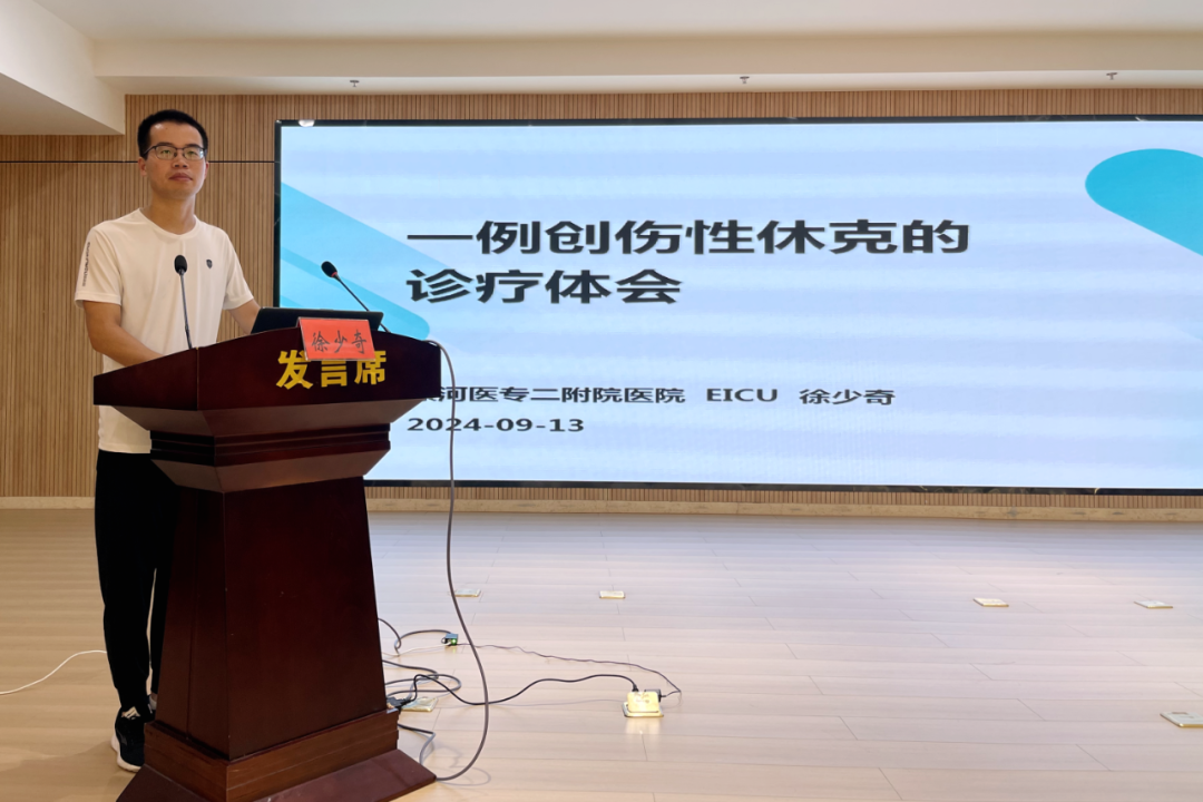 最后,急診重癥監(jiān)護病房徐少奇老師從《一例創(chuàng)傷性休克診療體會》這一課題詳細講解了臨床少見的創(chuàng)傷性心包填塞的診治,提醒我們床旁彩超在急危重患者搶救中的優(yōu)勢以及急診團隊密切配合的重要性。