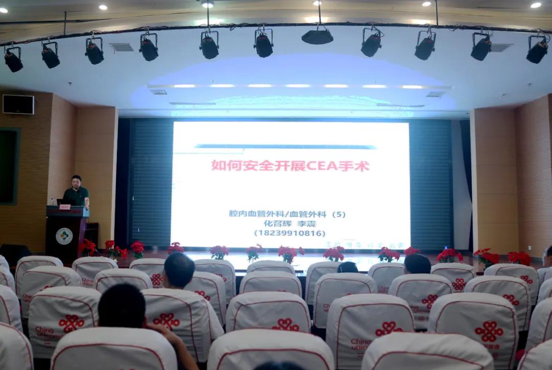 為進(jìn)一步落實(shí)卒中關(guān)鍵技術(shù),助力我院卒中中心高質(zhì)量發(fā)展,在院領(lǐng)導(dǎo)的大力支持下,漯河市骨科醫(yī)院(漯河醫(yī)專二附院、漯河市立醫(yī)院)特邀鄭大一附院化召輝教授來(lái)院授課,并對(duì)我院今年上半年卒中篩查出的中、重度頸動(dòng)脈狹窄患者進(jìn)行面對(duì)面會(huì)診交流。通過(guò)查閱患者頸動(dòng)脈彩超、頭頸CTA等資料,對(duì)患者病情進(jìn)行綜合評(píng)估,初步確定了需要治療的首批患者,其中兩位患者聽(tīng)說(shuō)不出漯河就能享受省級(jí)專家教授的服務(wù),當(dāng)即便同意手術(shù)。