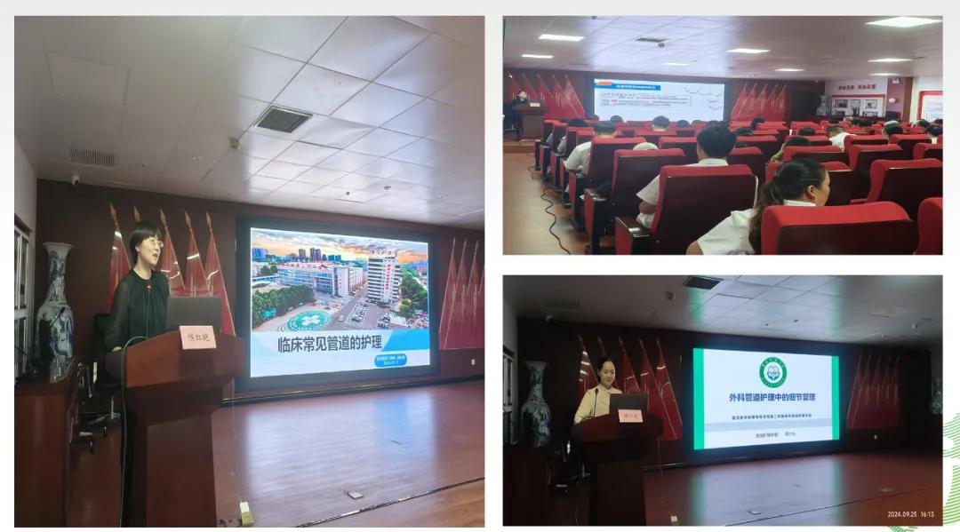漯河市骨科醫(yī)院管道護理學(xué)組組長侯紅艷護士長通過PPT培訓(xùn)的方式對各類管道的固定方法、固定流程,標識使用進行了詳細的講解,護士們加深了對管道規(guī)范固定重要性的認識,對規(guī)范臨床管道護理工作起到了良好的指導(dǎo)作用。婦產(chǎn)科護士長譚少允針對《外科管道護理中的細節(jié)管理》做了詳盡的說明。康復(fù)醫(yī)學(xué)科護士長田智慧分享了《血管導(dǎo)管相關(guān)感染預(yù)防與控制指南解讀》,預(yù)防血管內(nèi)導(dǎo)管相關(guān)血流感染的原因進行分析,并采取相關(guān)舉措后在臨床中獲取的成效和學(xué)員們分享經(jīng)驗。