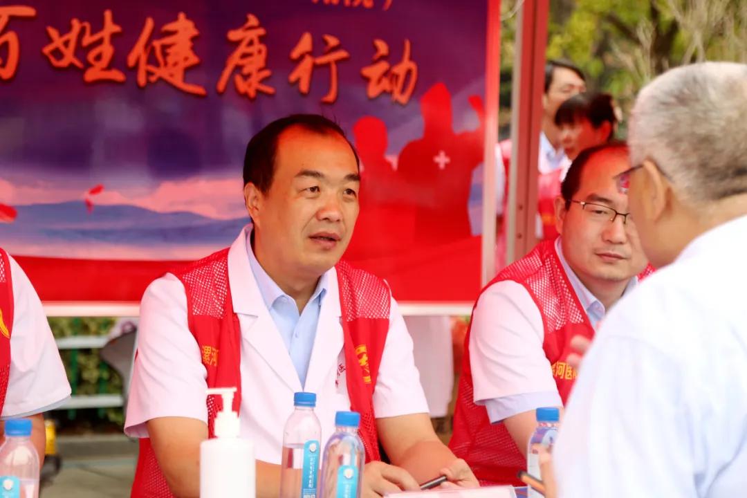 喜迎國慶,健康惠民。9月28日上午,在市衛(wèi)健委的統(tǒng)一組織下,漯河市骨科醫(yī)院(漯河醫(yī)專二附院、漯河市立醫(yī)院)黨委書記柴運洪、院長王齊超、副院長吳廣良帶領(lǐng)由骨科、內(nèi)科、外科、眼科、皮膚科、護(hù)理部、社工部共18位醫(yī)療專家組成的志愿者服務(wù)隊,在雙匯廣場開展了“服務(wù)百姓健康行動”集中大型義診活動。