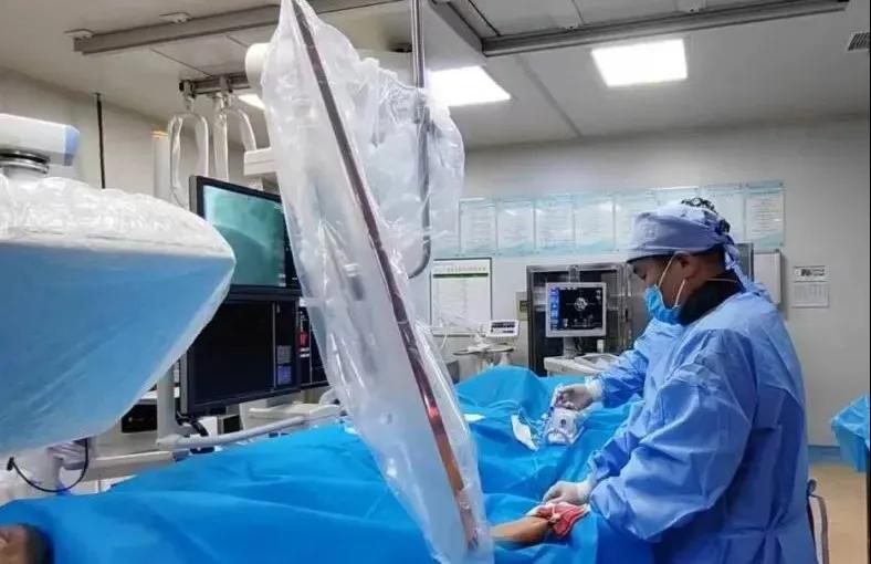 接診醫(yī)院急診科醫(yī)生與家屬溝通后,緊急派車把病人轉(zhuǎn)至我院。同時(shí),我院急診醫(yī)學(xué)科、介入手術(shù)室迅速響應(yīng)密切配合,心血管內(nèi)科二病區(qū)董艷彩主任、馬彥輝副主任在導(dǎo)管室同步做好準(zhǔn)備等待病人,最大程度為病人爭取更多時(shí)間。