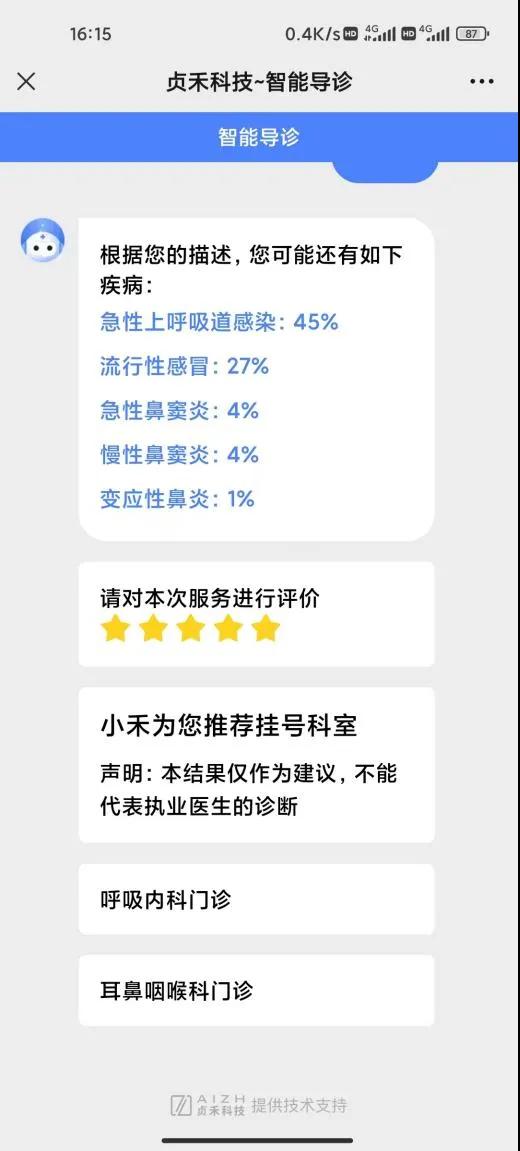 為了方便群眾就醫(yī),解決患者就醫(yī)過程中“知癥不知病”、“知病不知科”的問題,“漯河市立醫(yī)院”微信服務(wù)號(hào)推出智能導(dǎo)診功能,根據(jù)患者病情描述、給出分診建議、推薦相關(guān)科室、找到合適醫(yī)生,不但優(yōu)化了患者就醫(yī)流程,而且減少人工分診工作量、避免人員聚集。